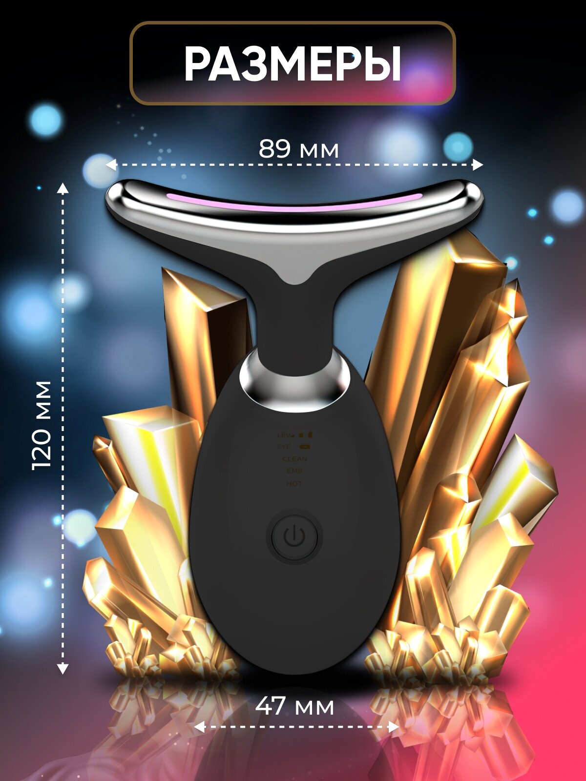 Микротоковый массажер для лица, шеи и тела с RF-лифтинг, EMS, светотерапия, черный