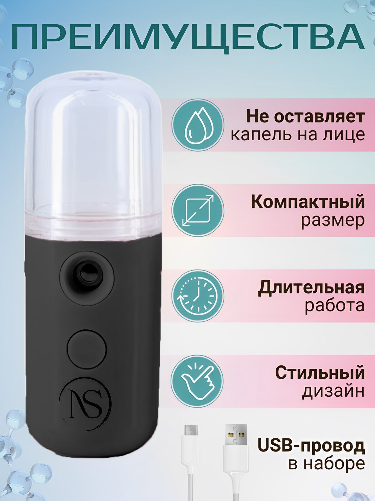 Портативный мини-увлажнитель для лица с подсветкой, черный интересное: