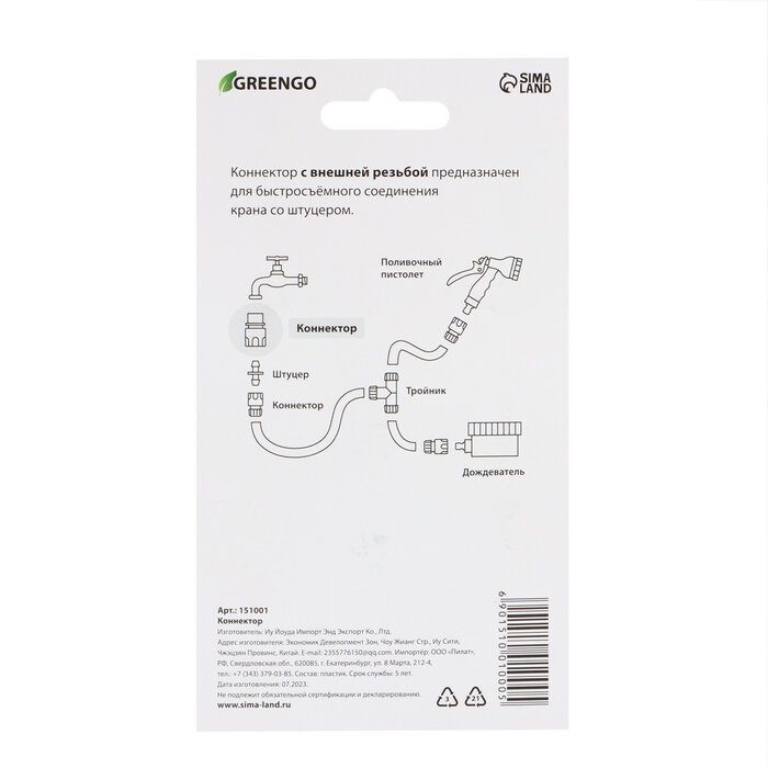 Коннектор, наружная резьба 3/4" (19 мм), быстросъёмное соединение, пластик