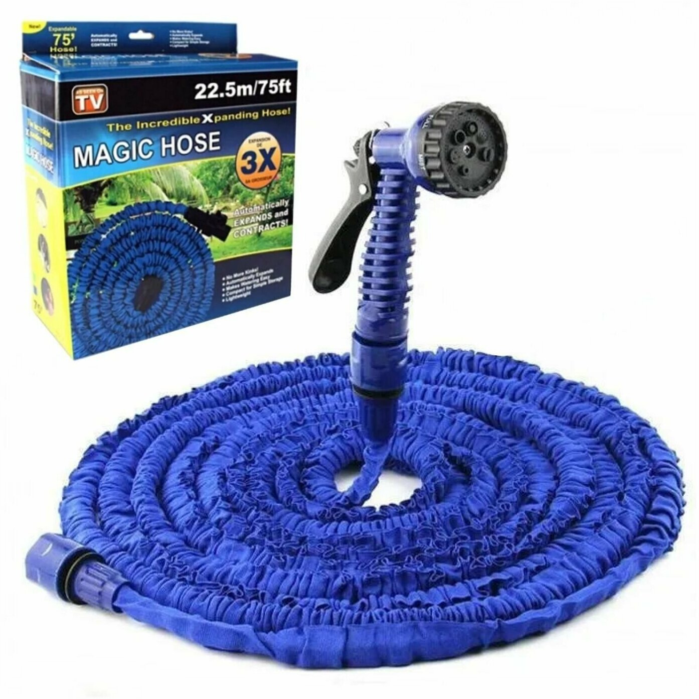 Купить Шланг садовый, поливочный Magic Hose растягивающийся рандомный цвет c распылителем для полива, чудо-шланг удлиняющийся