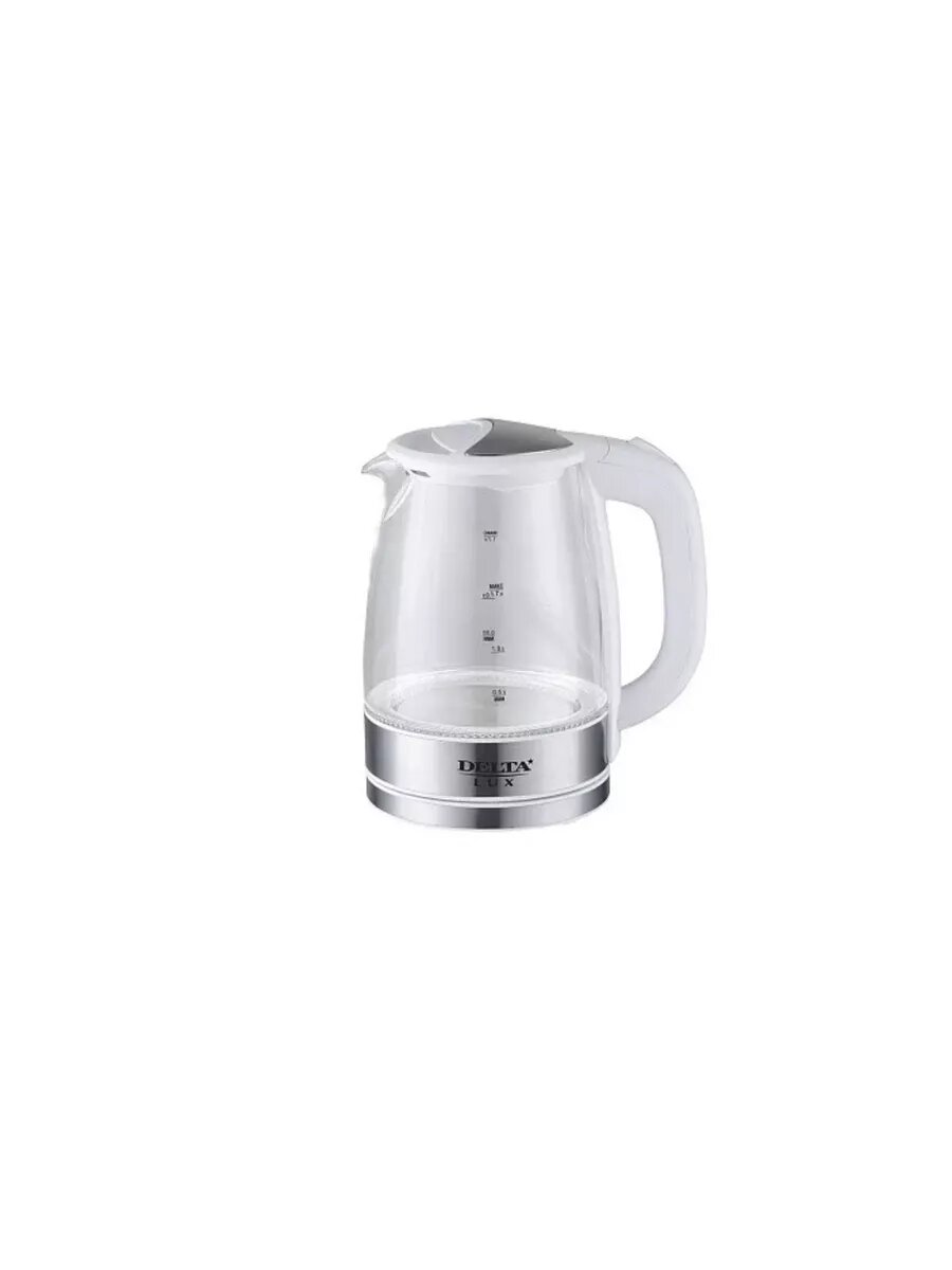 Электрочайник DELTA LUX DL-1204W корпус из жаропр. стекла, белый: 2200 Вт, объем 1,7 литра