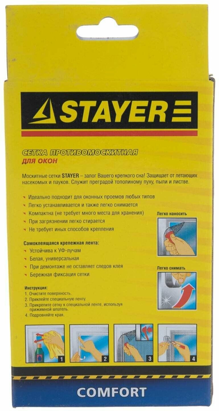 STAYER Сетка STAYER "COMFORT" противомоскитная для окна, с крепежной лентой, зеленая, ПЭТ, 1,1 х 1,3м, ( 12482-11-13 )