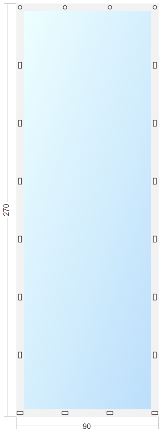 Мягкое окно Софтокна 90х270 см съемное, Скоба-ремешок, Прозрачная пленка 0,7мм, Серая окантовка, Комплект для установки