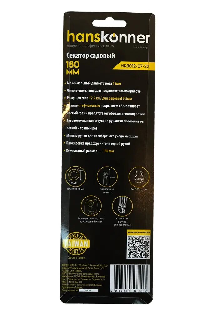 Секатор Hanskonner 180 мм HK3012-07-22 интересное: