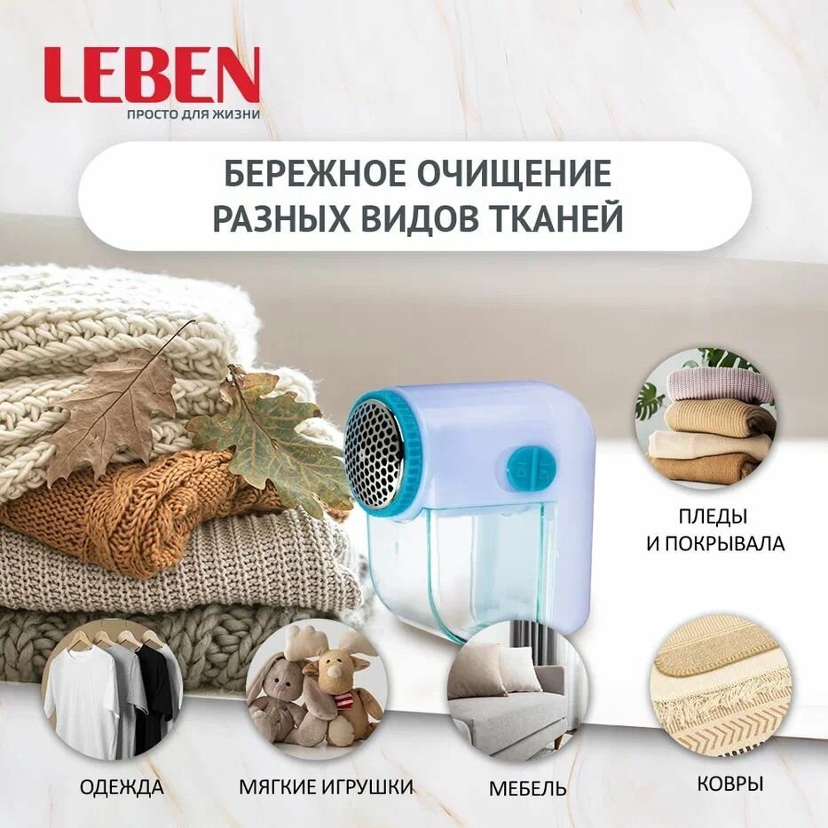 LEBEN Машинка для удаления катышков "Кроха", батарейки 2хAA (в комплект не входят)