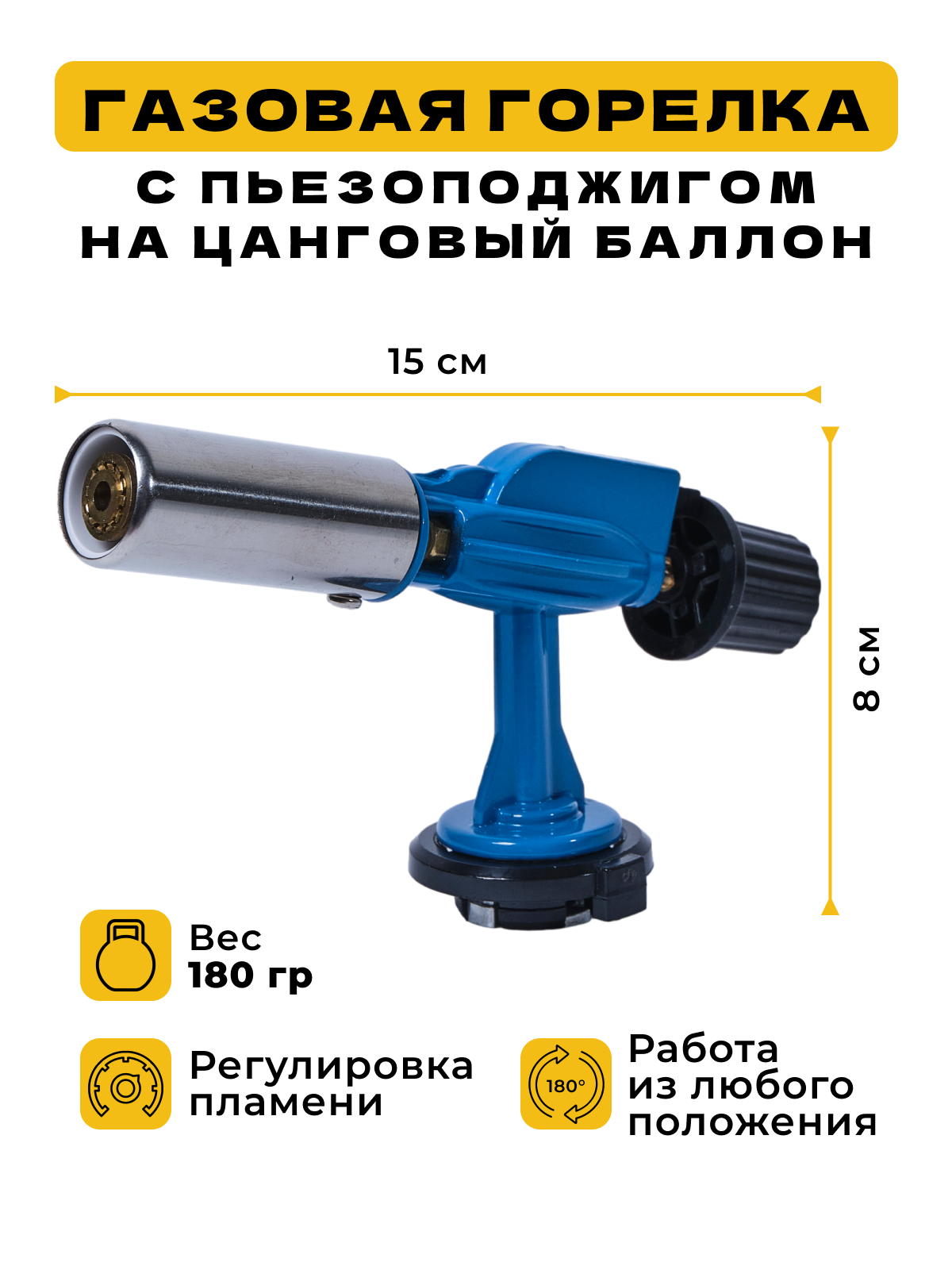 Газовая горелка с пьезоподжигом, с внутренним керамическим соплом, на цанговый газовый баллон, универсальная, туристическая. ЭП-900. Эвапром интересное: