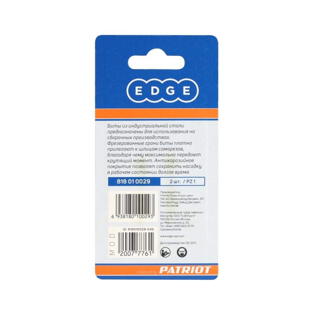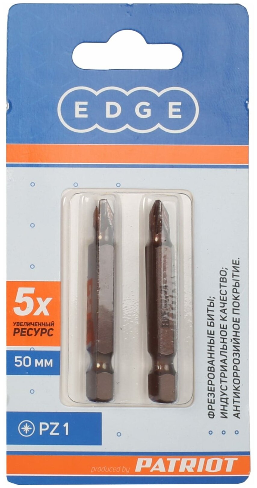 Бита EDGE by PATRIOT PZ1, сталь S2, длина 50 мм, 2шт в блистере