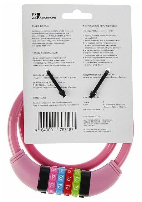 СохранитьЗамок велосипедный кодовый противоугонный тросовый авангард ВС-Т10К (650 мм) техно пинк интересное: