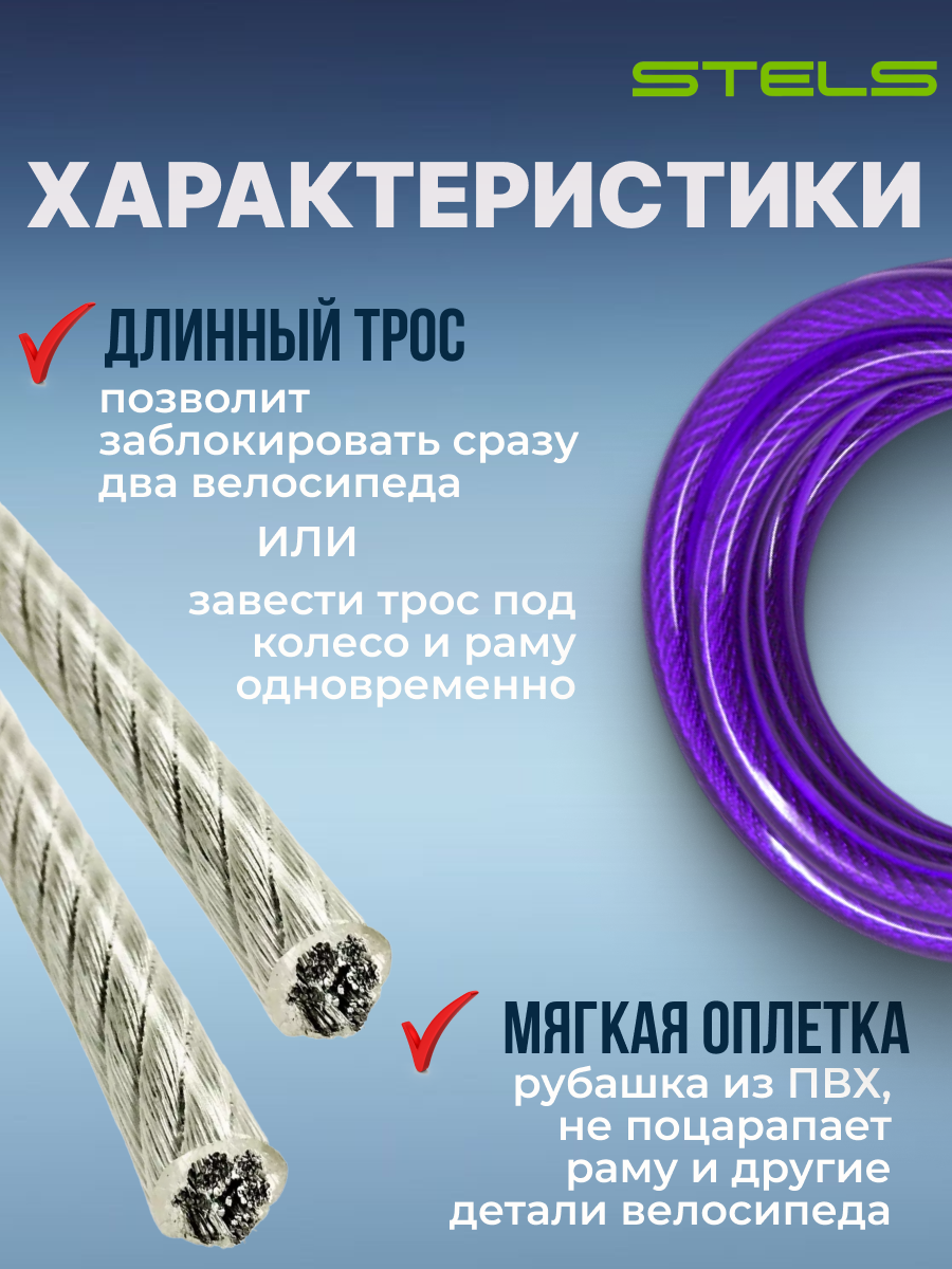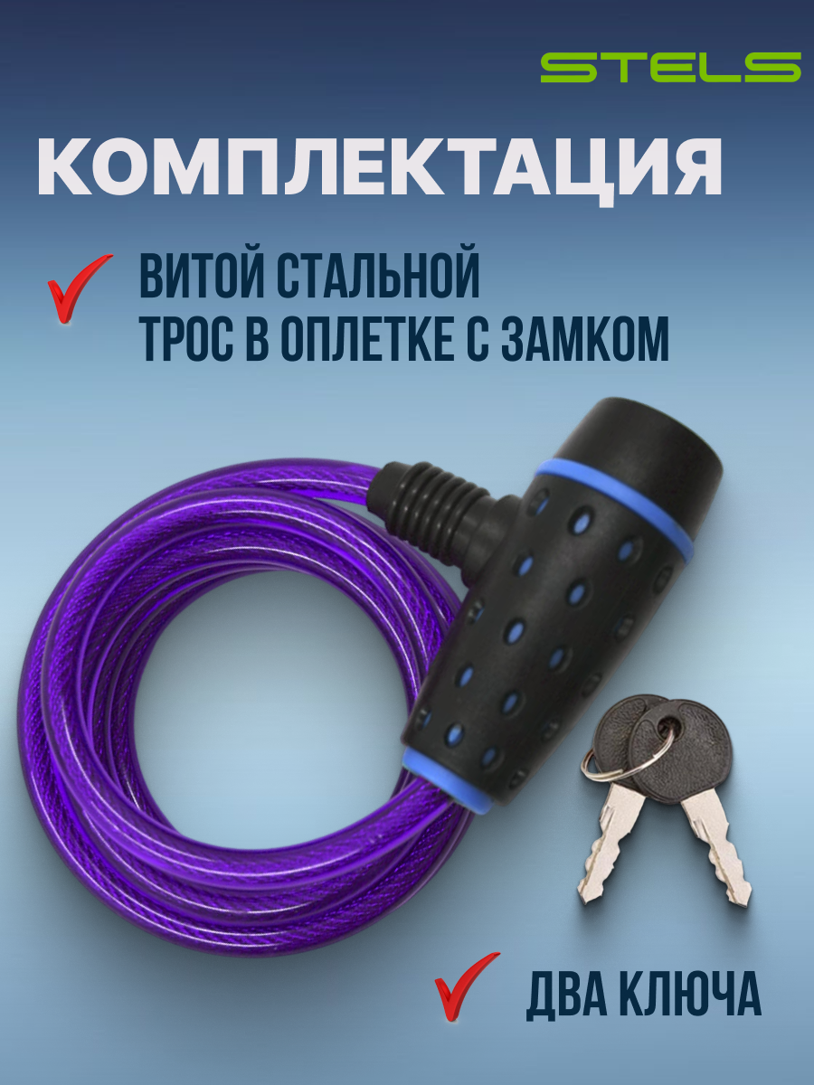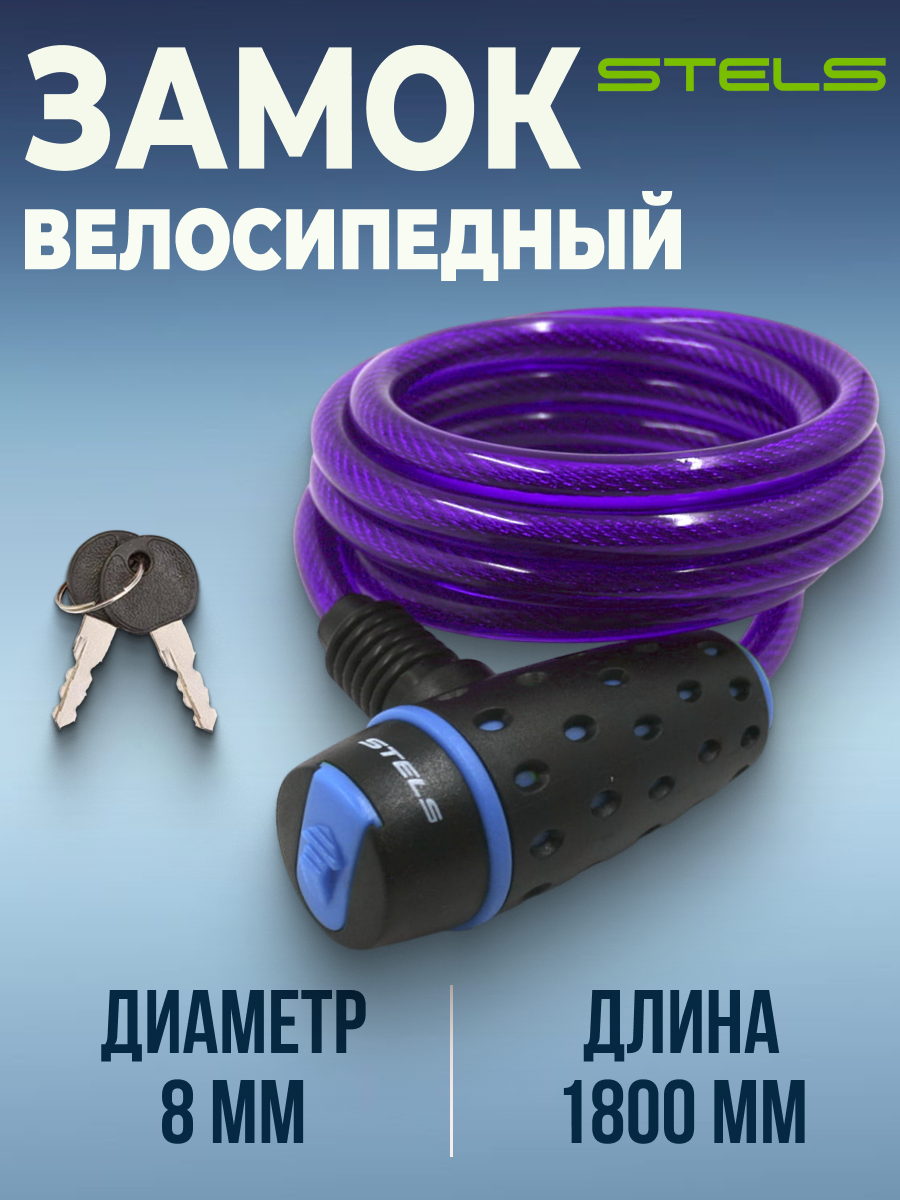 Трос-замок для велосипеда STELS ключевой 8х1800мм велозамок