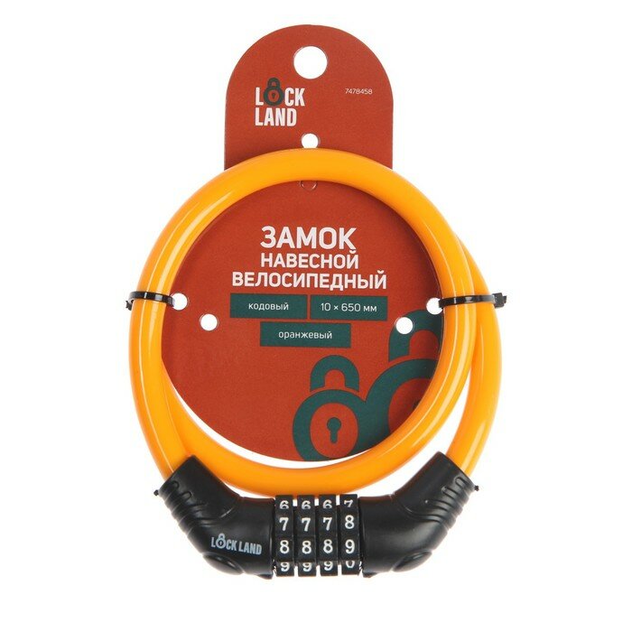 Купить LOCKLAND Замок навесной велосипедный LOCKLAND, кодовый,10 х 650 мм, цвет оранжевый