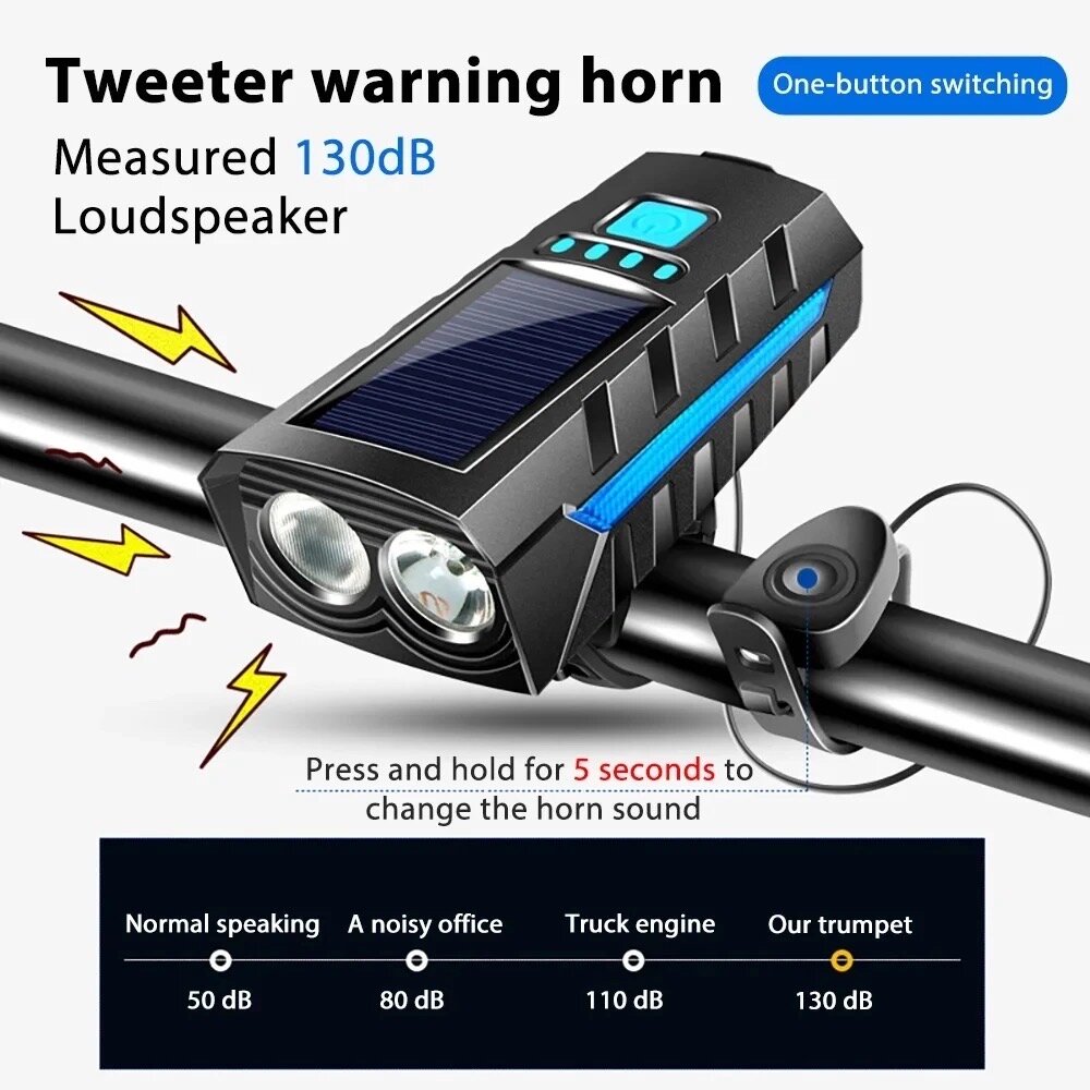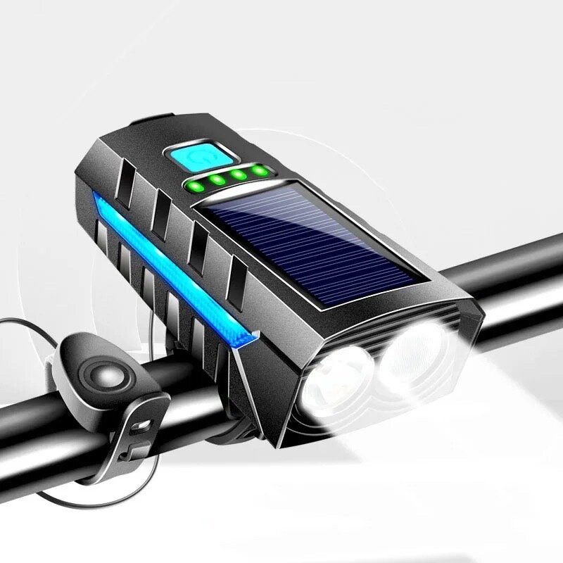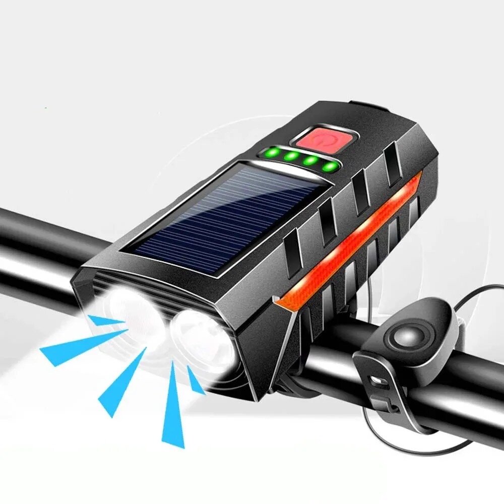 Купить Фонарь передний сверхъяркий велосипедный Linnhill 1000 Lm /велофонарь на солнечной батареи с сигналом и зарядкой, фонарь на самокат