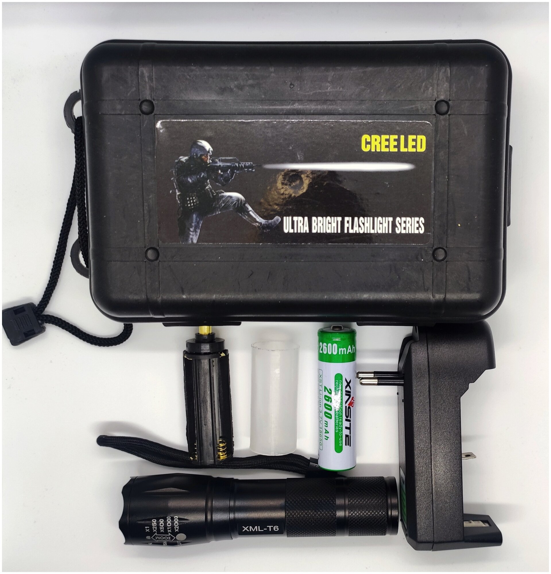 Фара передняя велосипедная суперъяркая LED алюмин. 5600 люмен, 8,4V, пять диодов, с аккумулятором
