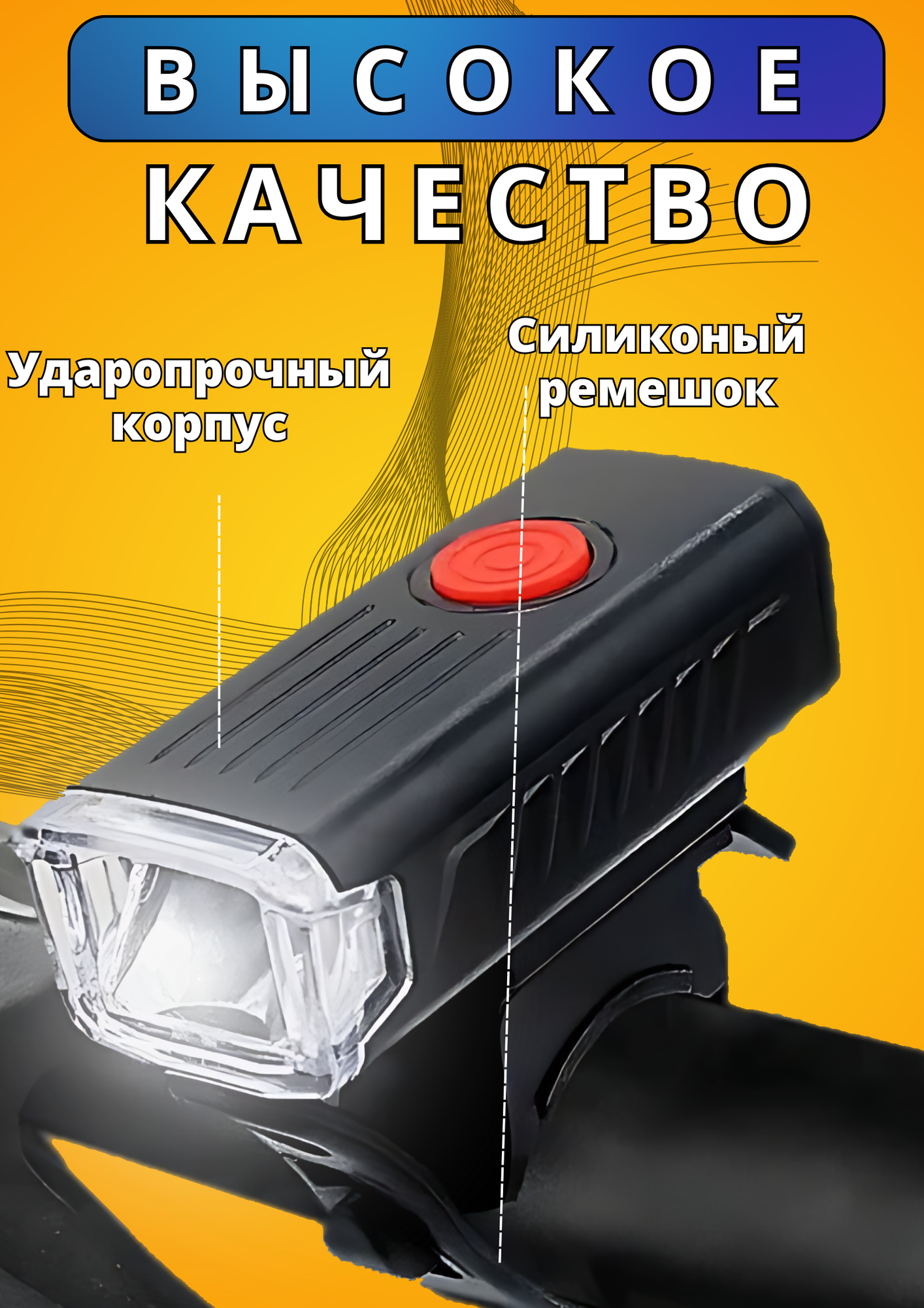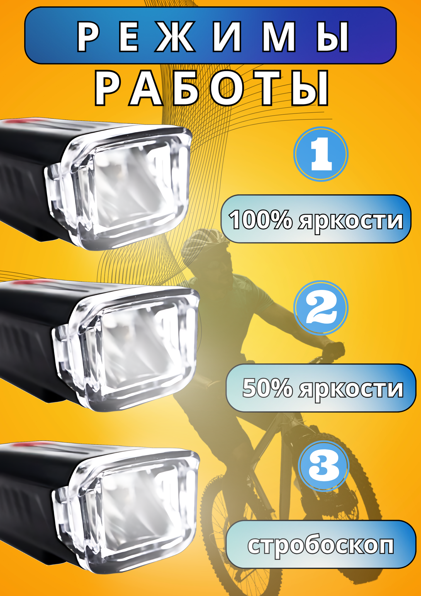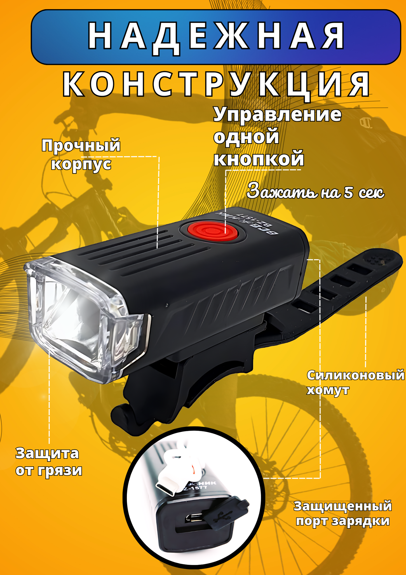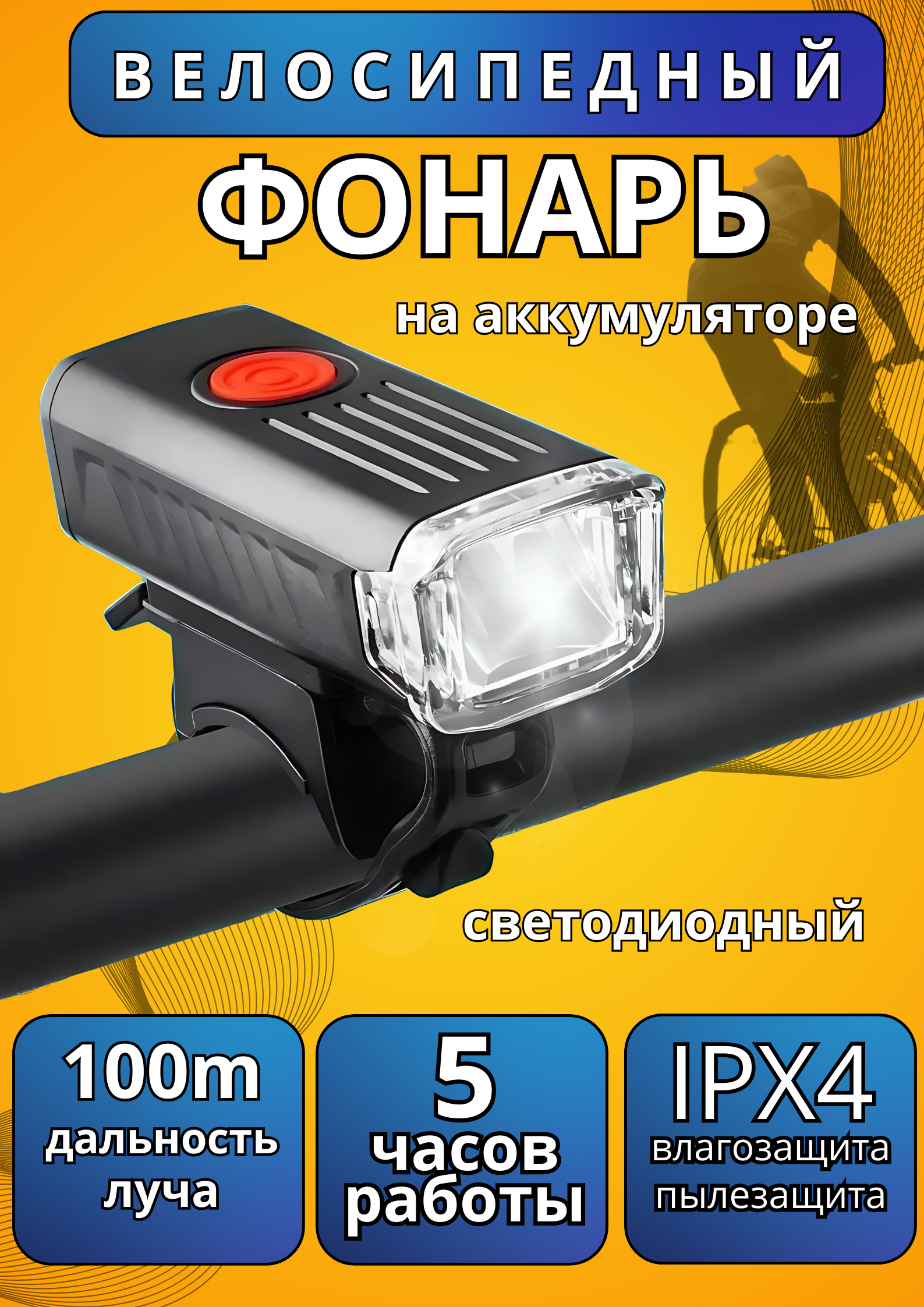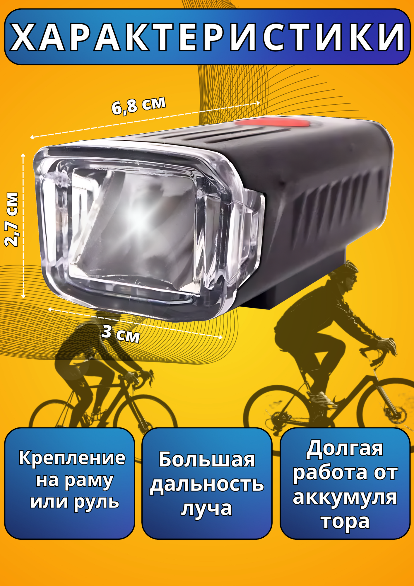 Фонарь велосипедный аккумуляторный светодиодный передний с гудком (оранжевый)