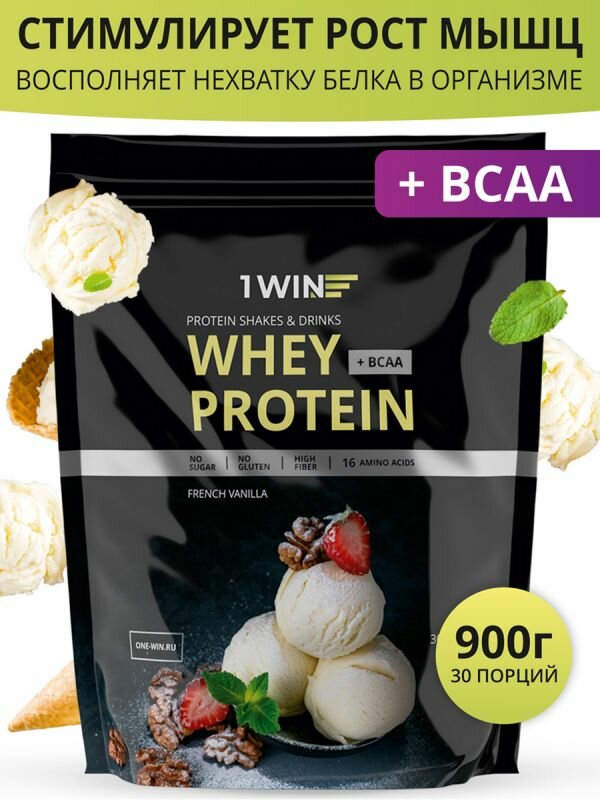 1WIN Протеин Whey Protein, Сывороточный белковый коктейль для похудения, без сахара, Французская ваниль, 900 г.