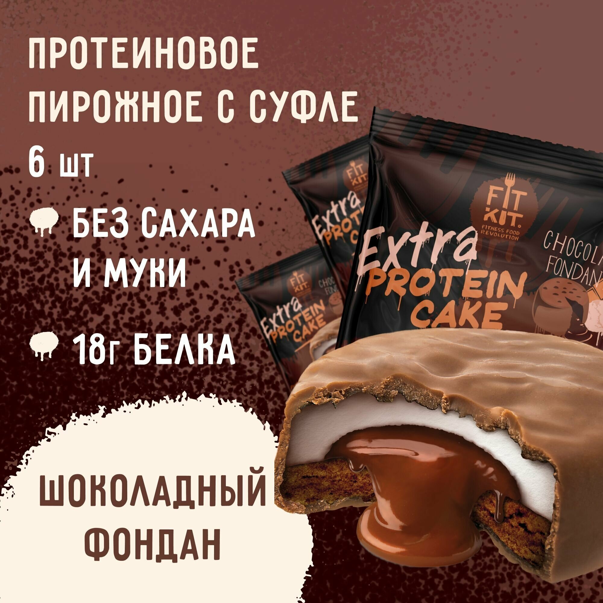 Купить Протеиновое печенье с суфле без сахара Fit Kit Protein Cake EXTRA, 6шт x 70г (Шоколадный фондан)