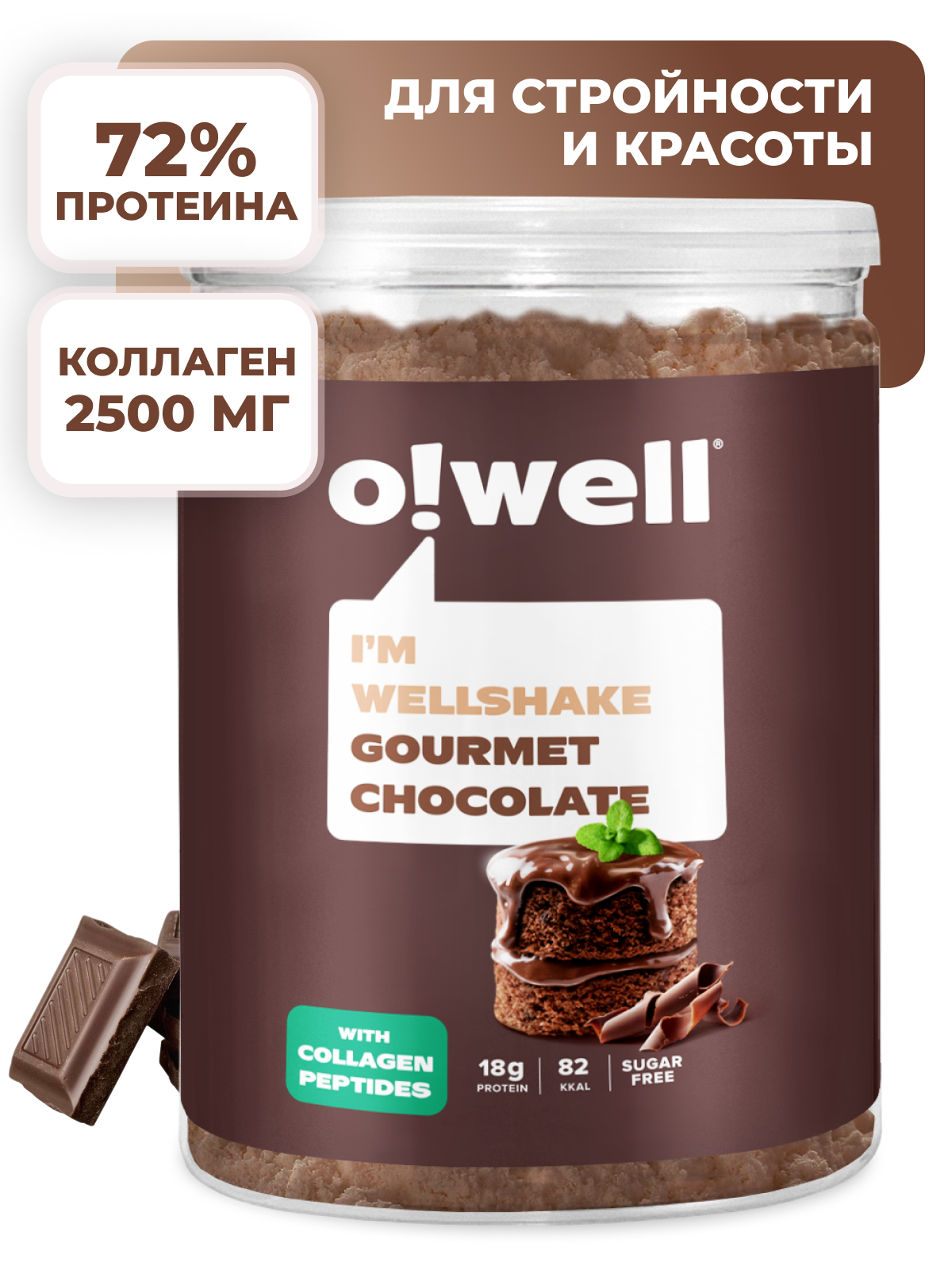 Купить Протеин без сахара С коллагеном порошок белковый протеиновый коктейль для похудения с витаминами С D здоровое питание вкус Шоколад Owell 400г
