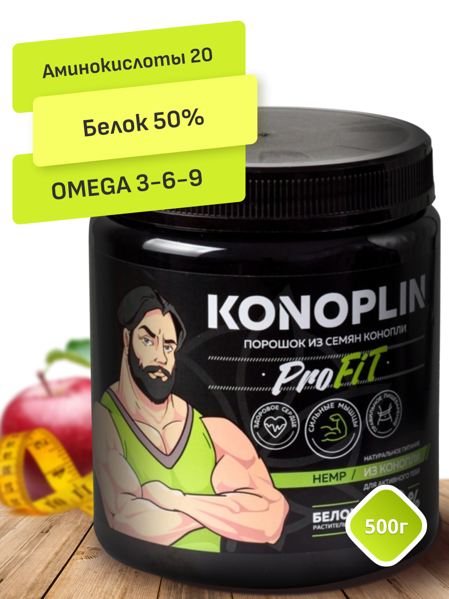 Растительный конопляный протеин "Коноплин" из очищенных семян (ядер) конопли, для здоровья и похудения, Конопель, 500г