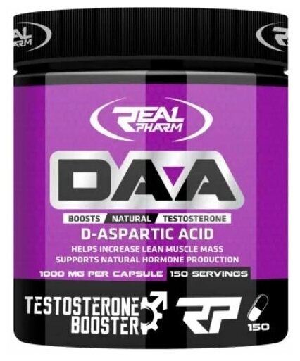 Купить D-Аспарагиновая кислота Real Pharm DAA 150 капсул / Спортивное питание для повышения тестостерона