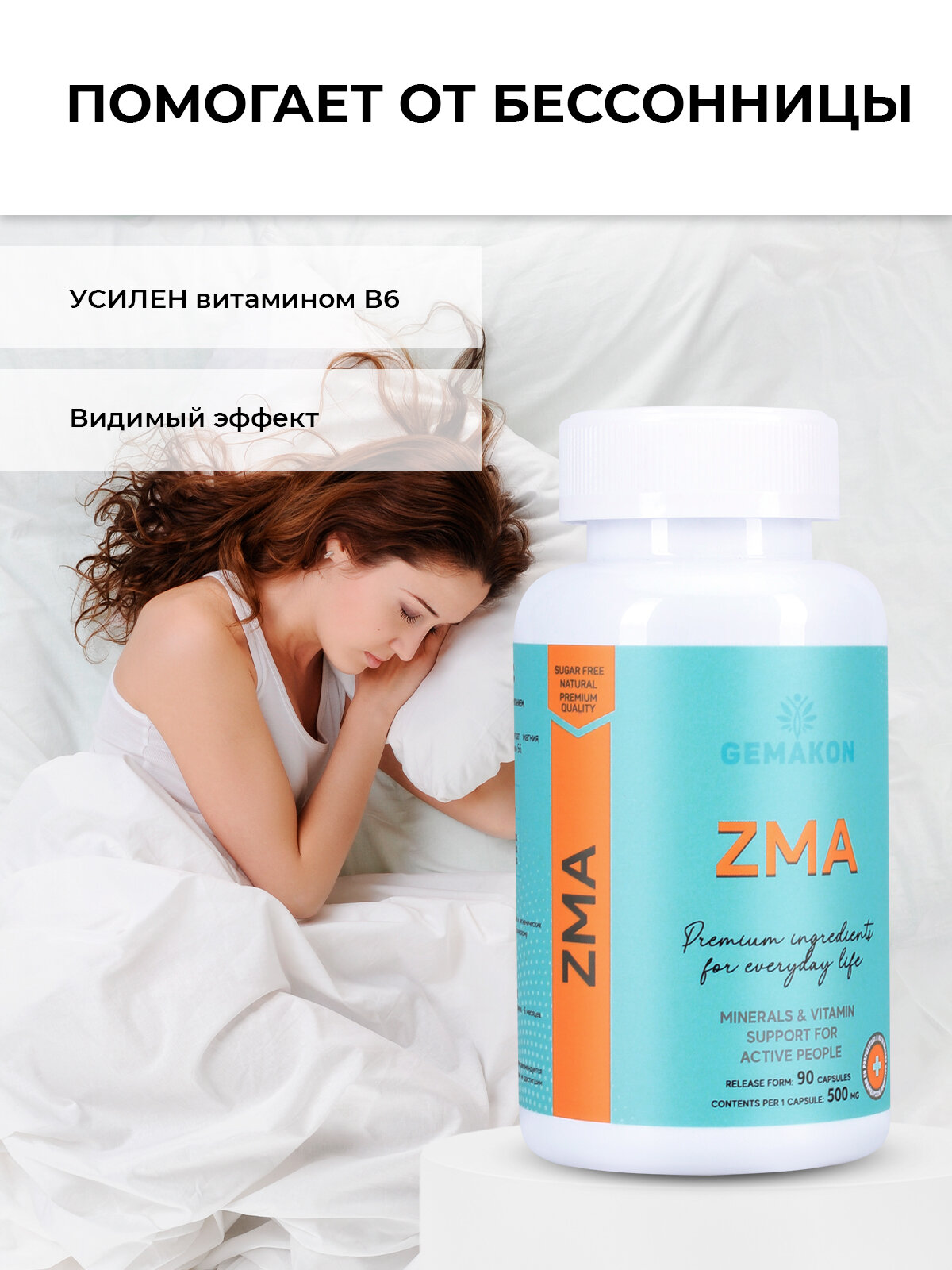 БАДы ЗМА комплекс ZMA, B6 цинк магний бустер тестостерона, 90 капсул