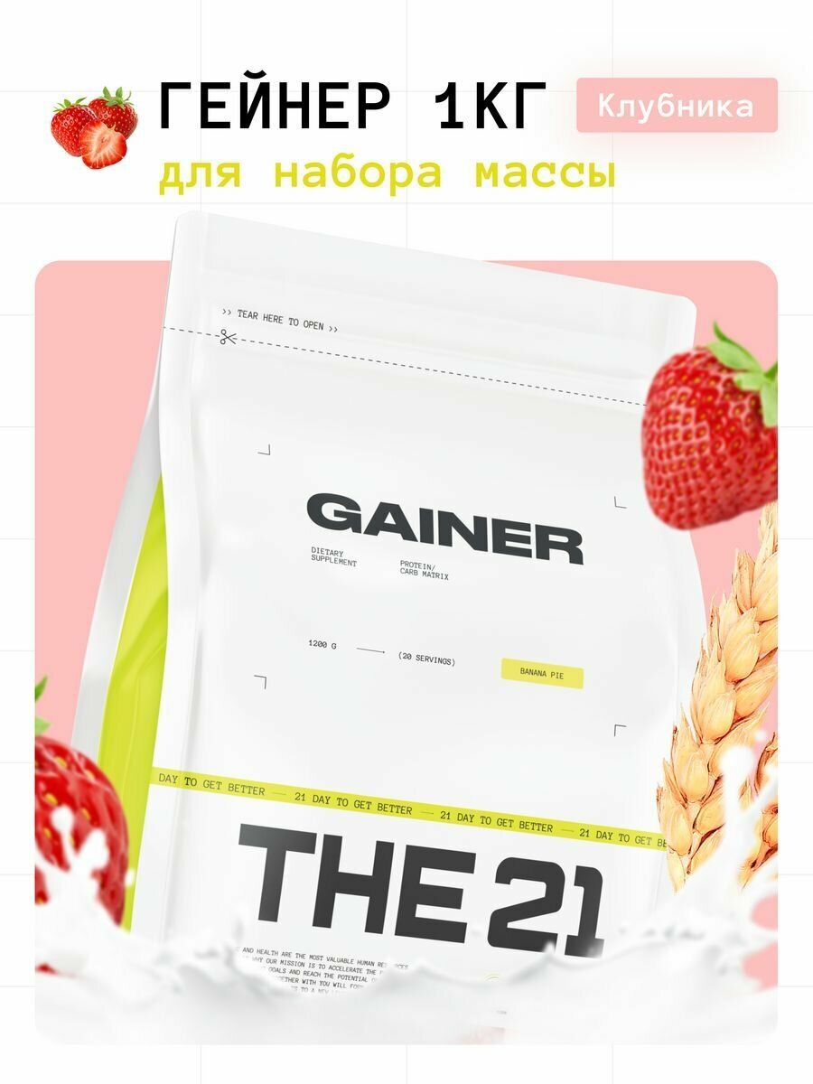 Купить THE 21 Gainer Гейнер Клубника / Gainer / Спортивное питание для набора массы веса медленными быстрыми углеводами, 1кг
