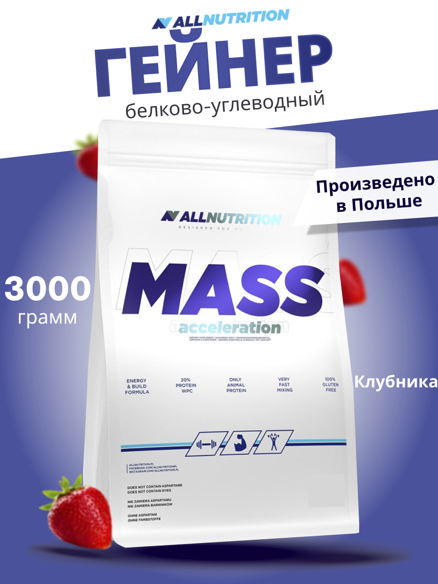 Купить Гейнер All Nutrition Mass Acceleration клубника 3000 гр