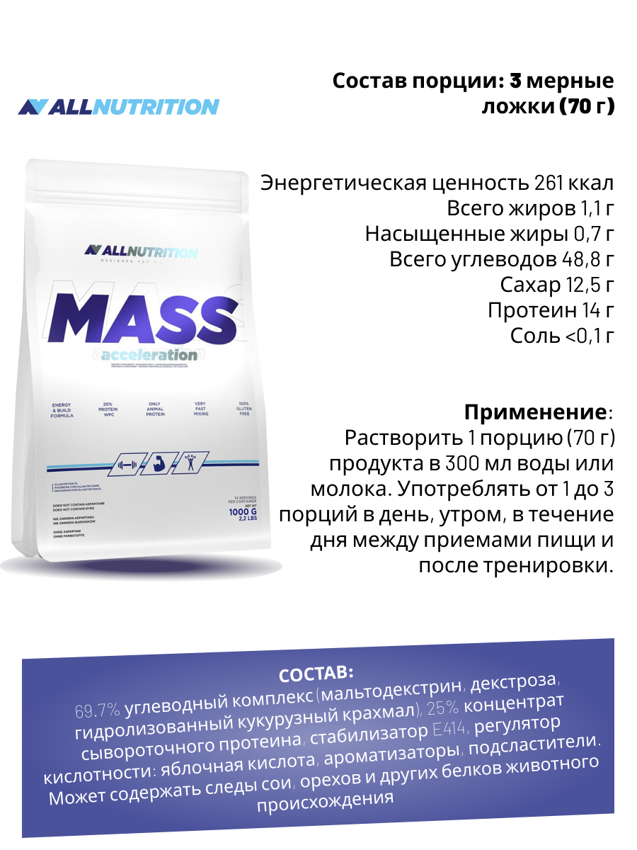 Гейнер All Nutrition Mass Acceleration ваниль 7000 гр интересное: