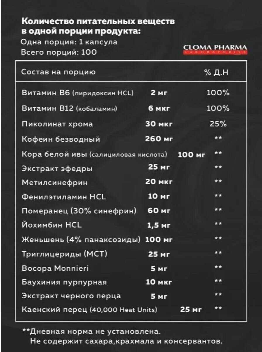 Ниже Вы можете прочитать отзывы на Cloma Pharma Methyldrene Elite 25 100 капсул, ознакомится с подробными характеристиками, посмотреть интересные обзоры и фотографии на Cloma Pharma Methyldrene Elite 25 100 капсул.