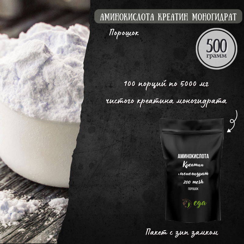 Аминокислота Креатин моногидрат 200 mesh (порошок), 500 грамм интересное: