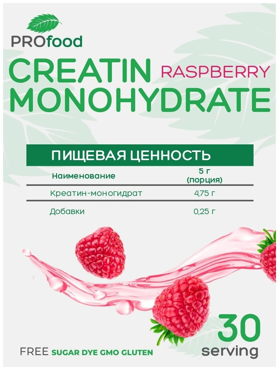 Pro Food Креатин моногидрат порошок со вкусом Малина 150г интересное: