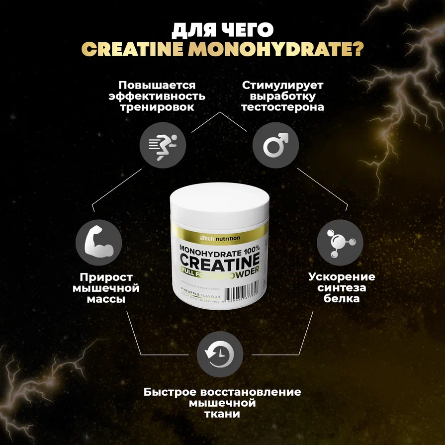 Креатин Моногидрат 100% aTech Nutrition, ананас, 180гр интересное: