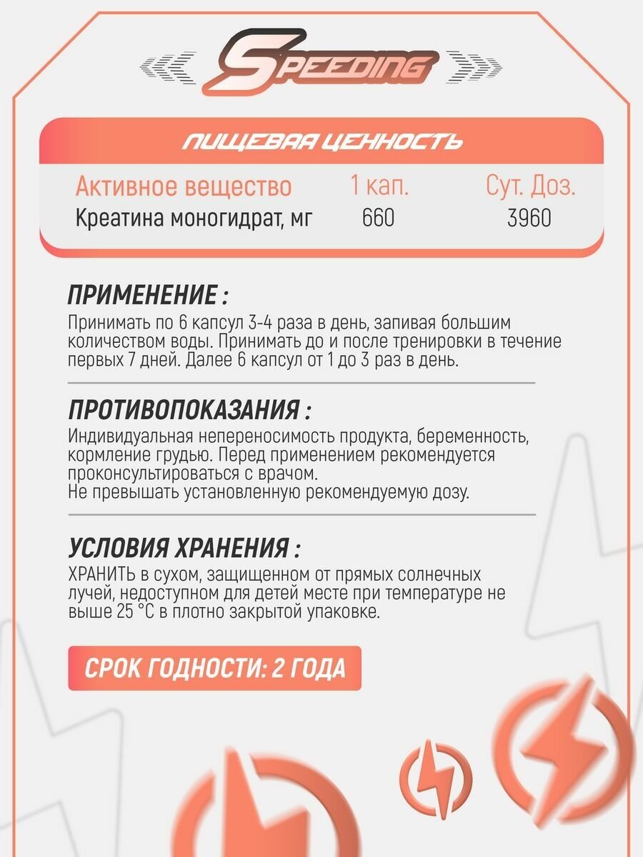 Speeding Креатин капсулированный 660мг 150 капсул интересное: