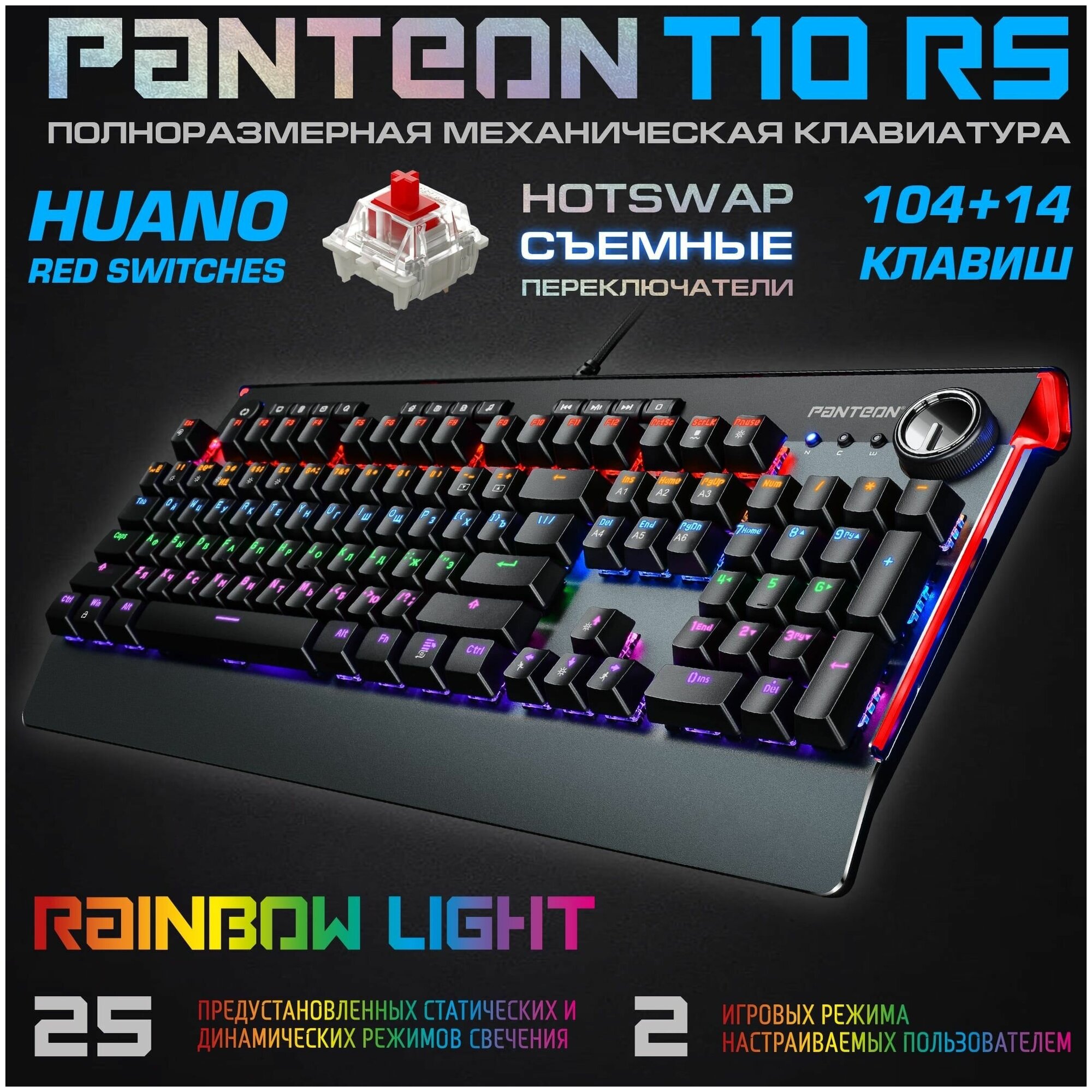 Ниже Вы можете прочитать отзывы на Проводная механическая игровая клавиатура PANTEON T10 RS (LED,HUANO Red,104+14 кл.,USB) черная, ознакомится с подробными характеристиками, посмотреть интересные обзоры и фотографии на Проводная механическая игровая клавиатура PANTEON T10 RS (LED,HUANO Red,104+14 кл.,USB) черная.