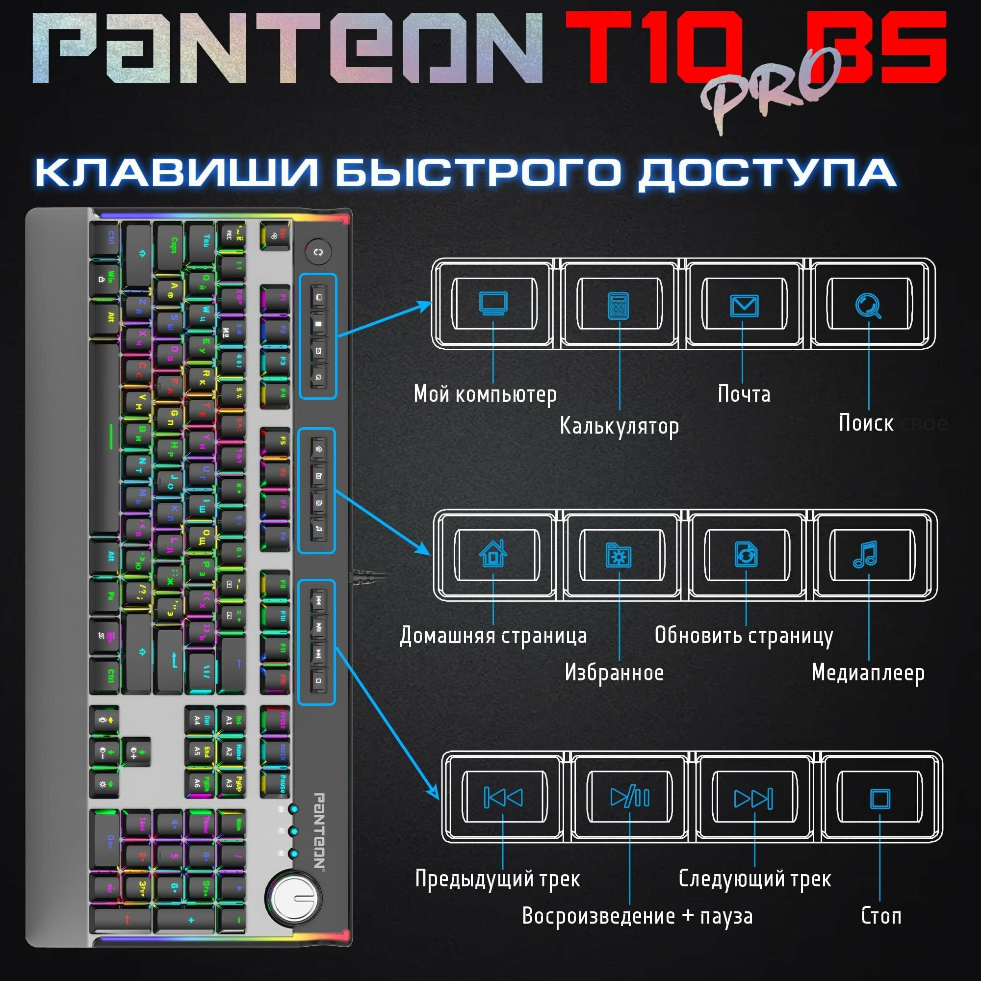 Проводная механическая игровая клавиатура с rgb-подсветкой PANTEON T10 PRO RS