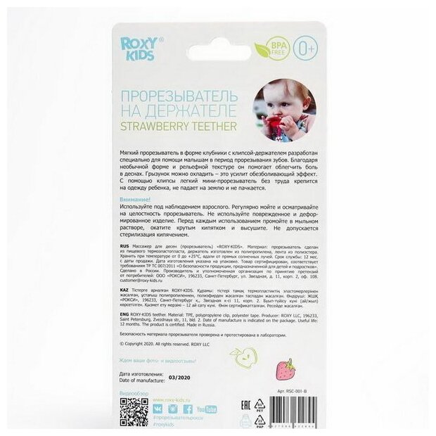 ROXY-KIDS прорезыватель д/зубов на держателе клубника 3+