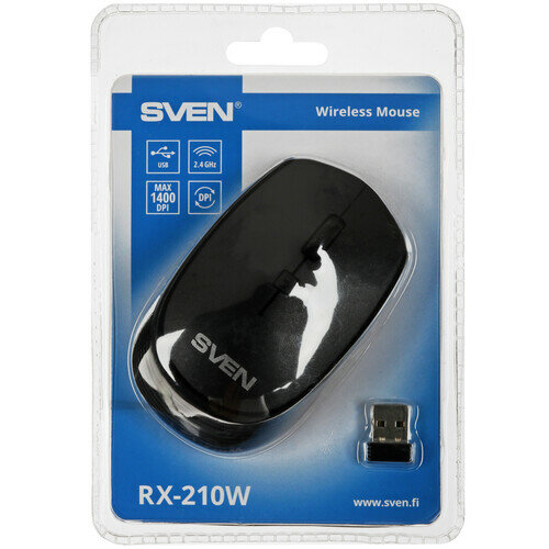 Беспроводная мышь SVEN RX-210W чёрная (2,4 GHz, 3+1кл. 800-1400 DPI, блистер)