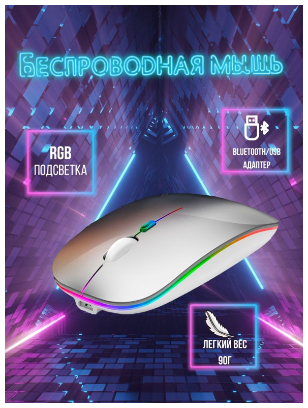 Беспроводная компьютерная мышь, игровая, Bluetooth, RGB подсветка, K-8, серебристый. интересное: