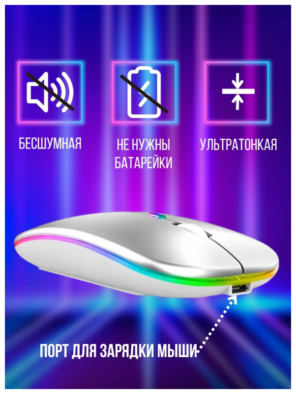 Ниже Вы можете прочитать отзывы на Беспроводная компьютерная мышь, игровая, Bluetooth, RGB подсветка, K-8, серебристый., ознакомится с подробными характеристиками, посмотреть интересные обзоры и фотографии на Беспроводная компьютерная мышь, игровая, Bluetooth, RGB подсветка, K-8, серебристый..