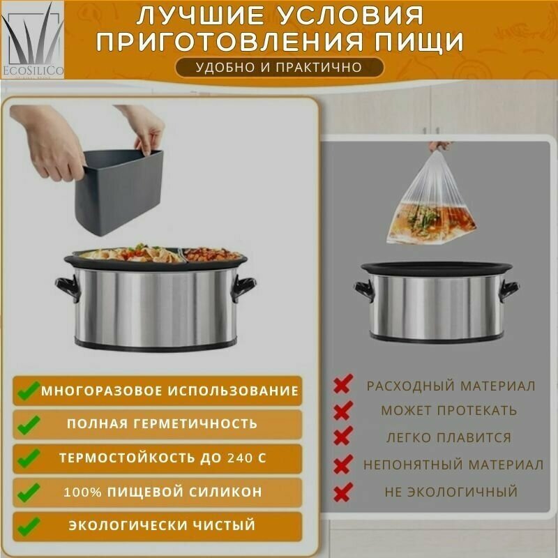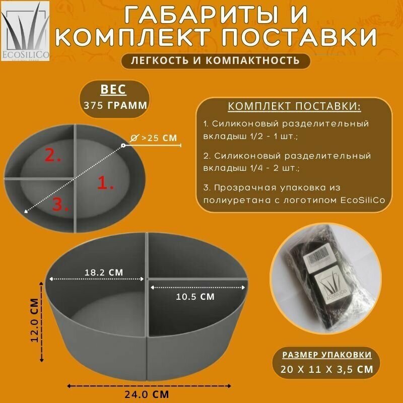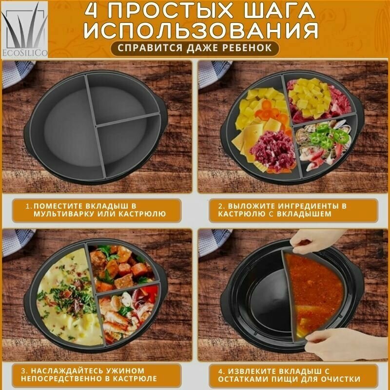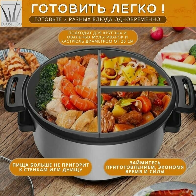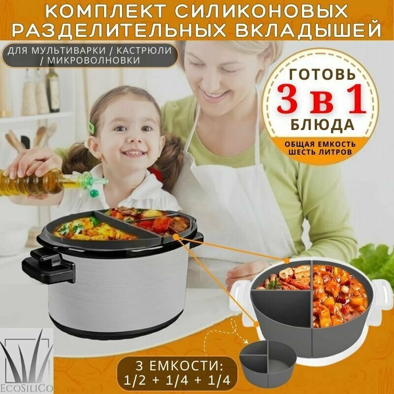 Комплект силиконовых разделительных вкладышей EcoSiliCo 3 в 1 для мультиварки / кастрюли / микроволновки, 6QT, комплект 3 шт., 6 литров интересное: