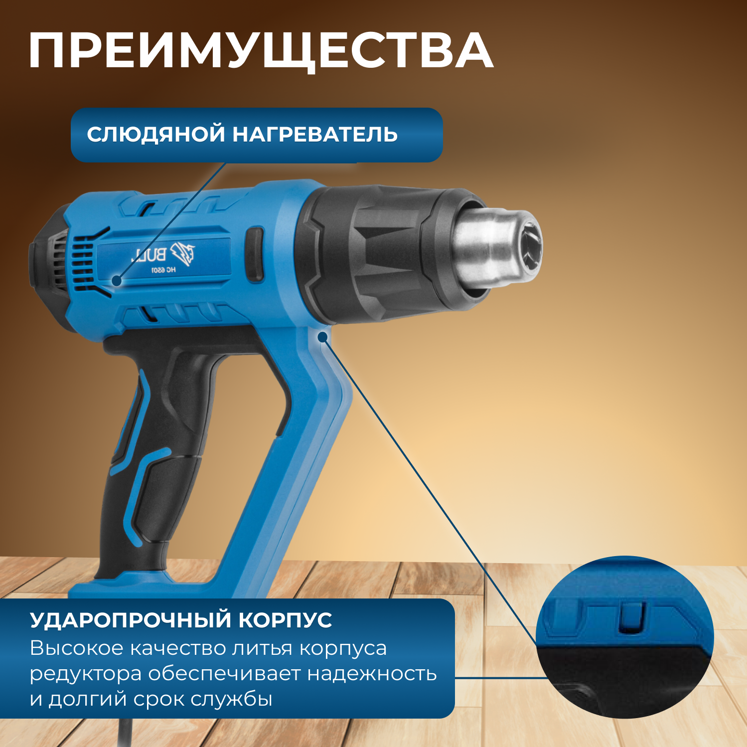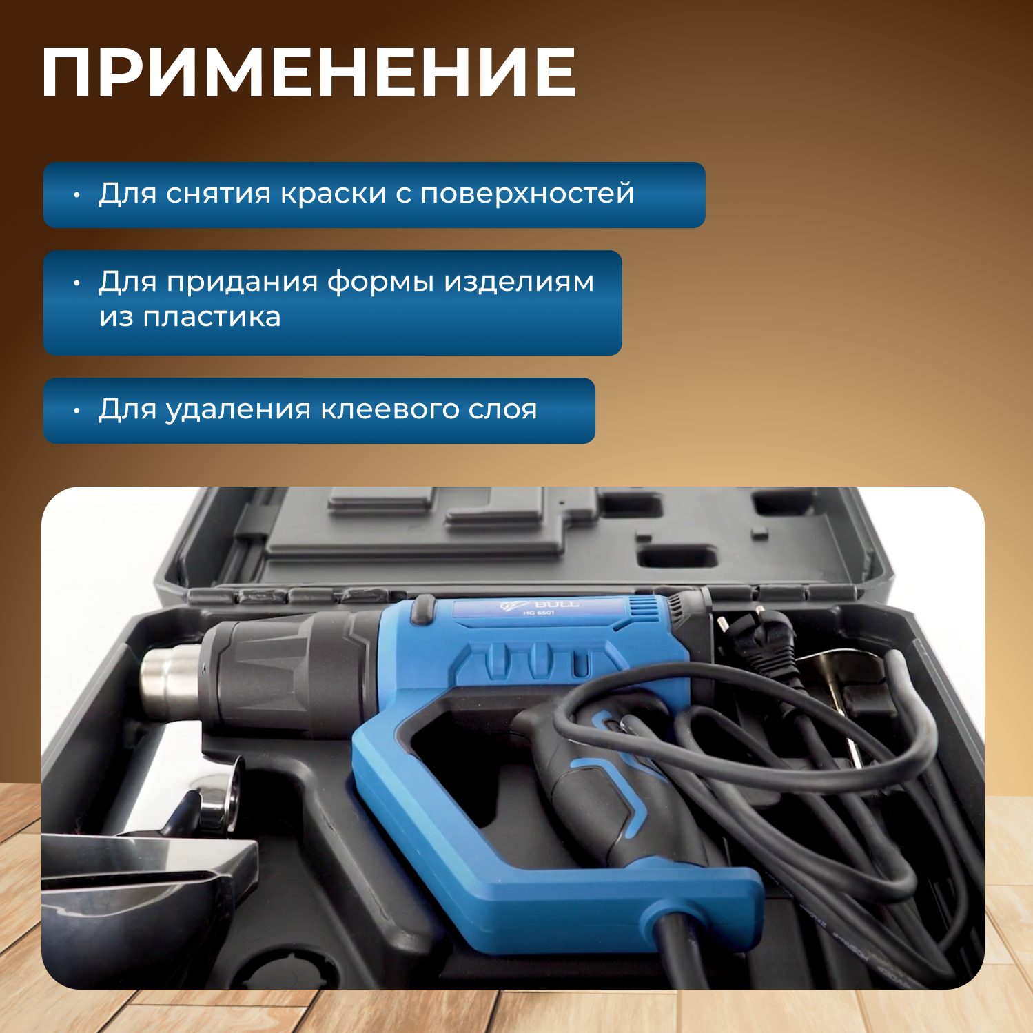 Термовоздуходувка BULL HG 6501 в чем. + набор сопл (2000 Вт, 50-650 °С, плавная регулировка, LCD-дисплей) (0326218) интересное: