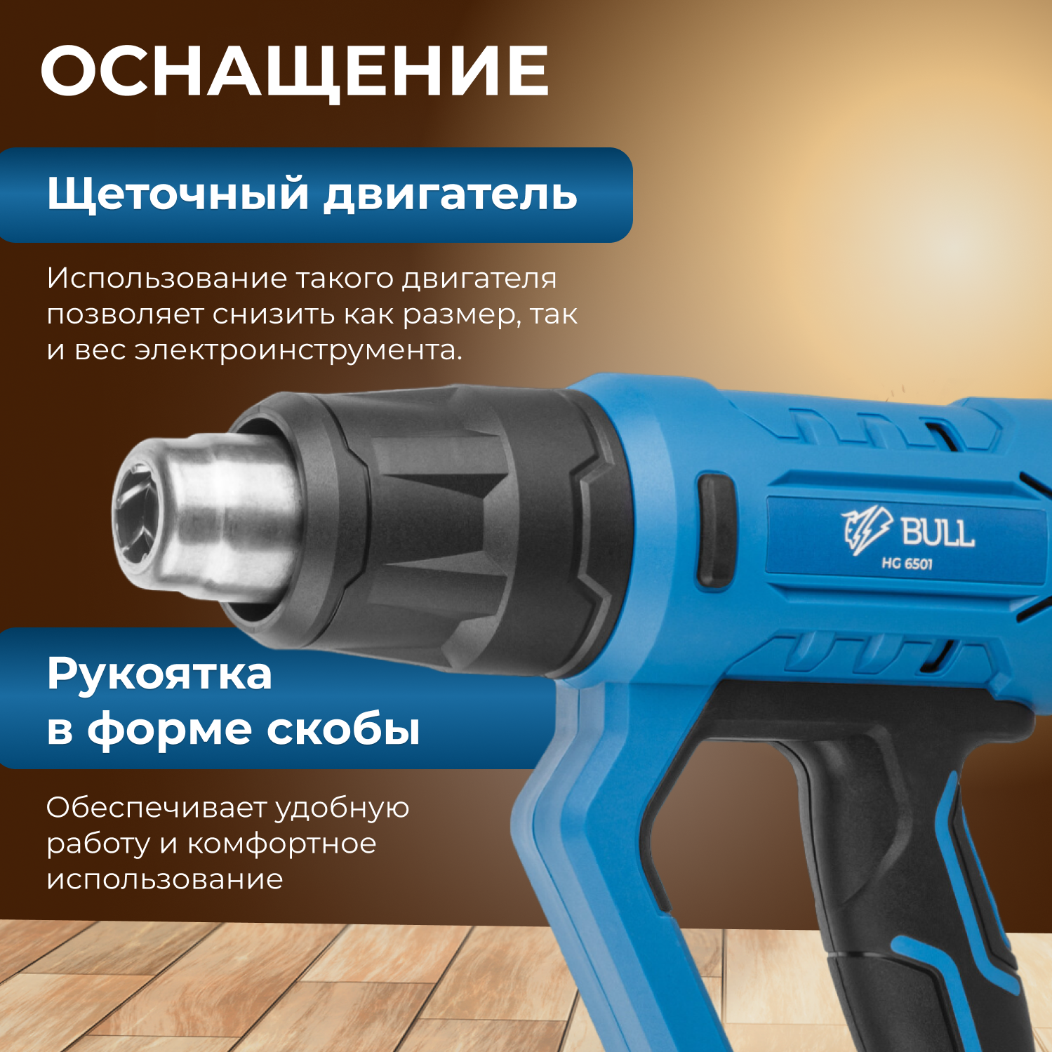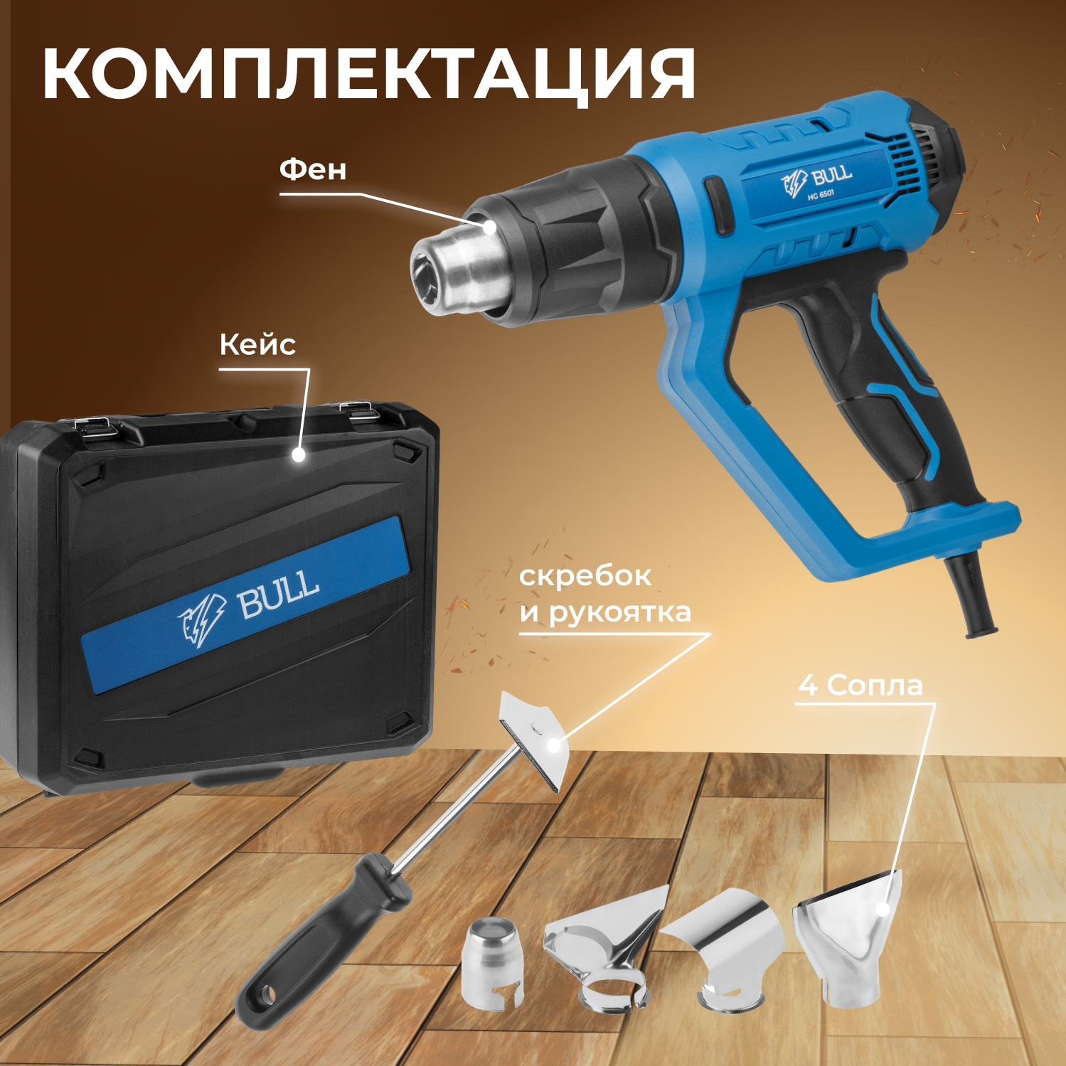 BULL Термовоздуходувка HG 6501 + набор сопл 0326218