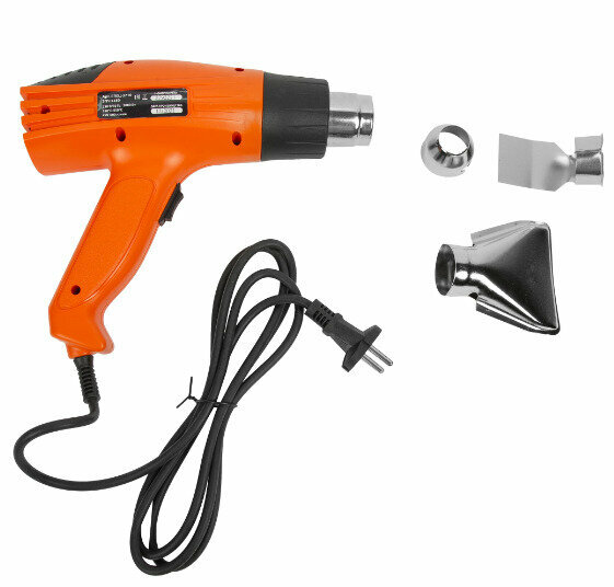 Фен технический (строительный), ЗУБР ФТ-2000, насадки 3 шт, 2 режима: 350град/ 350л/мин, 650град/ 550л/мин, коробка, 2000Вт