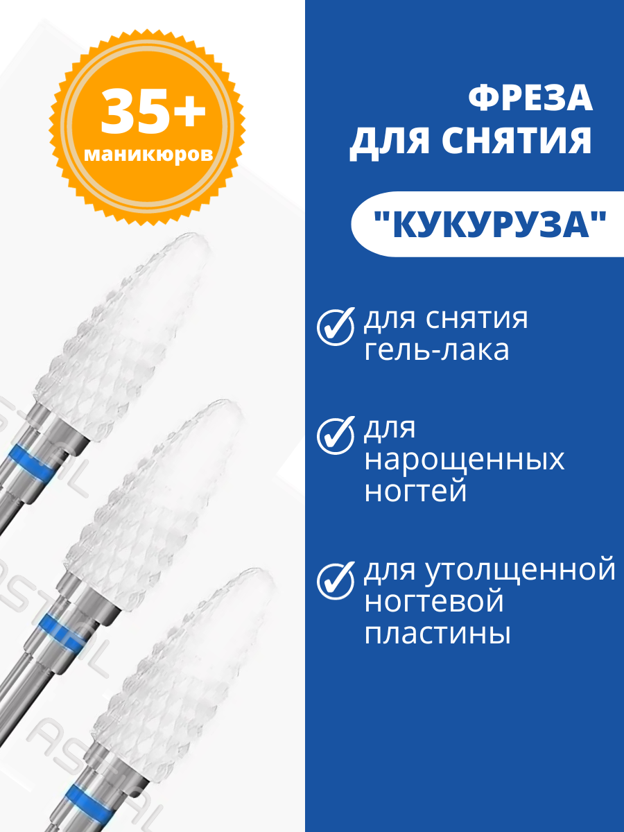 Astial / Фреза керамическая кукуруза для коррекции ногтей и снятия гель лака, набор маникюрных фрез 2 шт