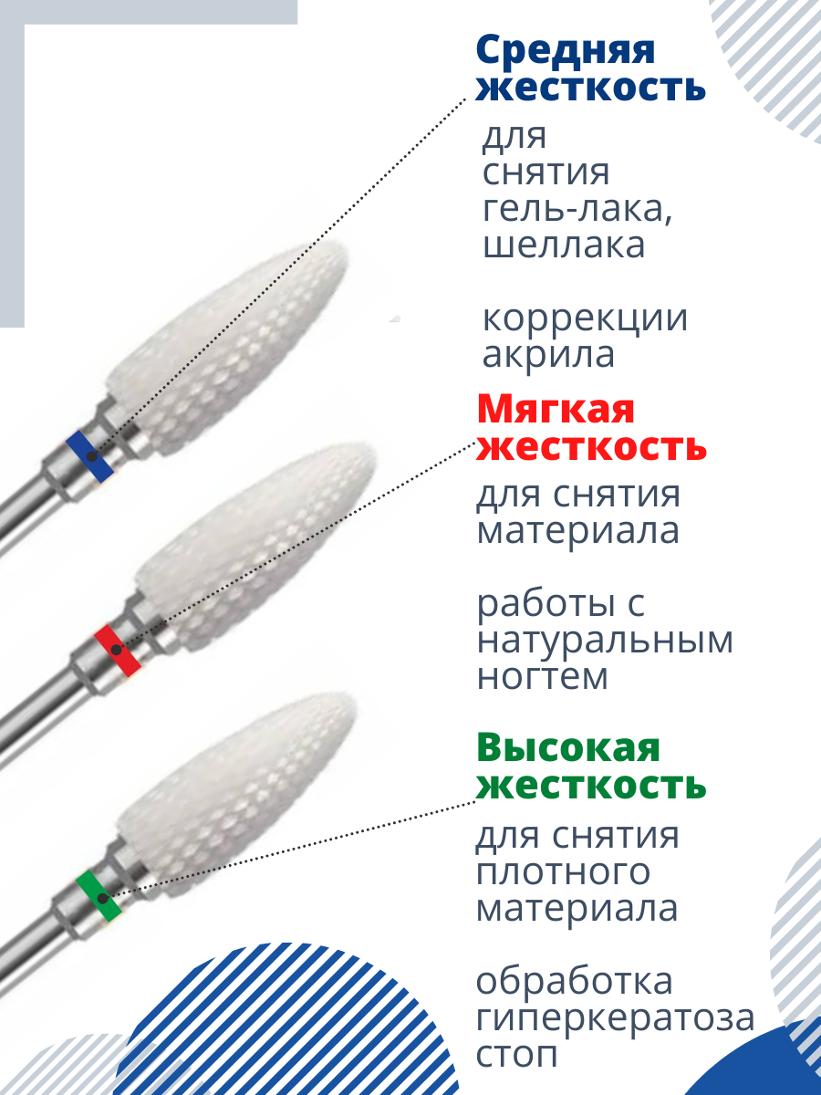 Керамические фрезы Astial "Кукуруза" для снятия гель-лака с синей насечкой, 3 шт, боры 217940