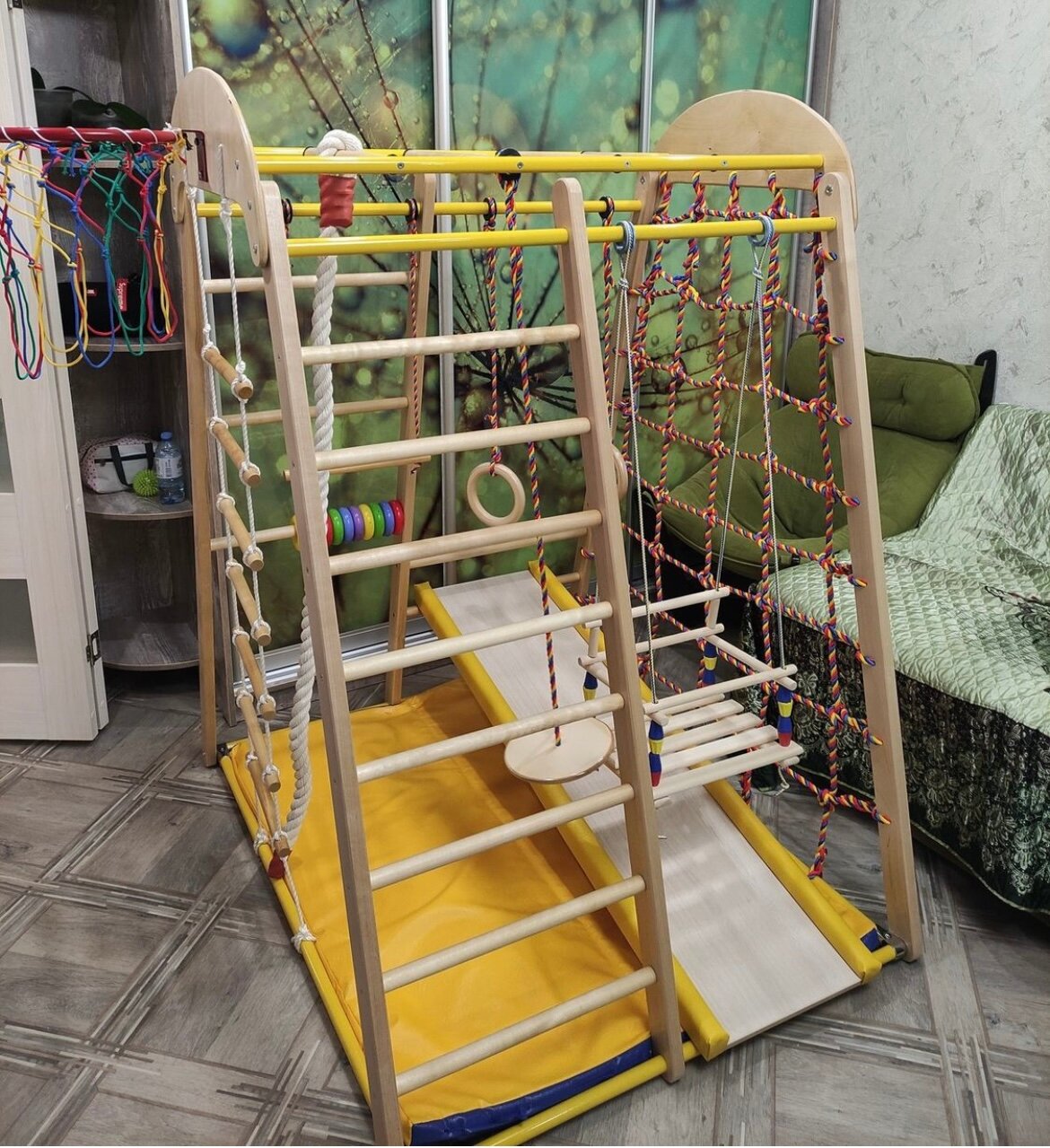 СохранитьДетский спортивный комплекс Вертикаль Веселый малыш WOOD, горка с мягкими бортиками, для дома и квартиры интересное: