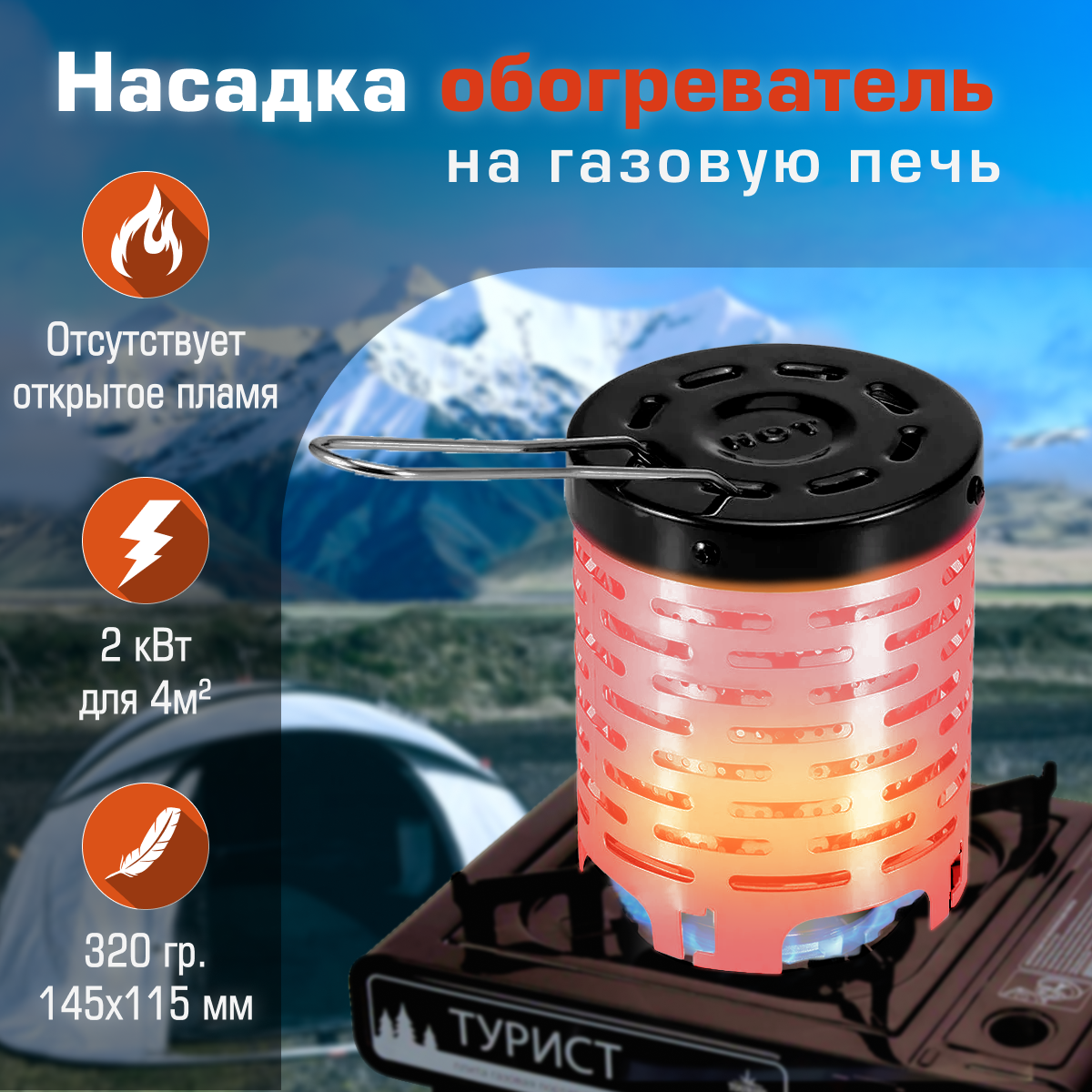 | Плюсы: | Компактная, легкая!!! Для обогрева палатки самое то!!! |