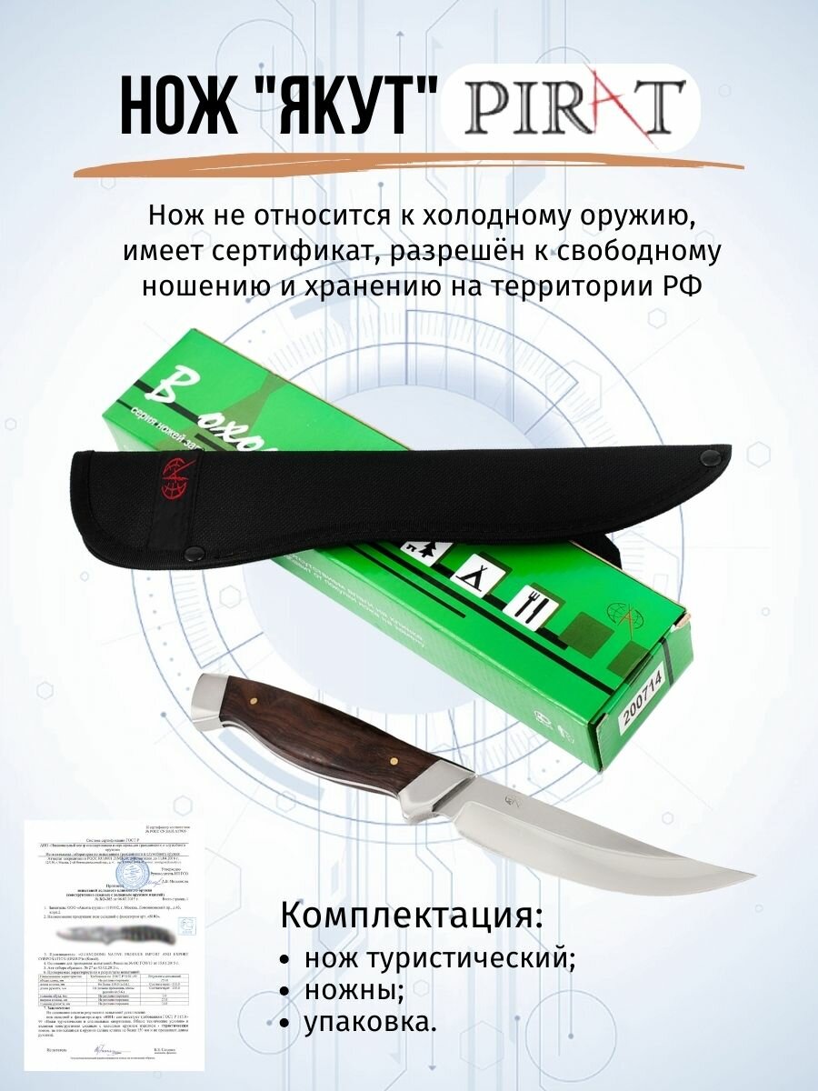 Ниже Вы можете прочитать отзывы на Нож туристический Pirat "Якут", ознакомится с подробными характеристиками, посмотреть интересные обзоры и фотографии на Нож туристический Pirat "Якут".
