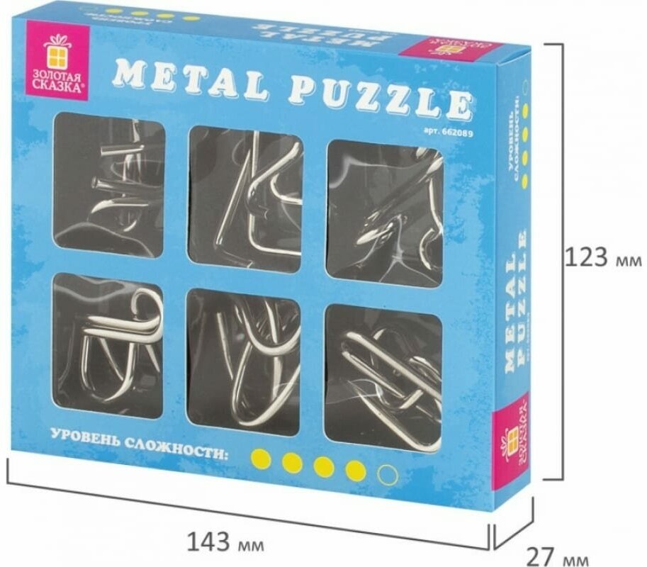 Головоломки металлические золотая сказка (уровень сложности "эксперт"), набор 6 штук, 662089