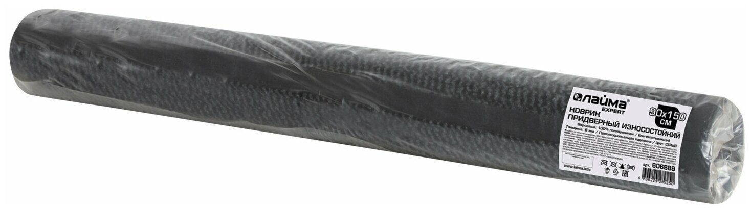 Коврик придверный Лайма Expert, износостойкий, влагозащита, 90х150 см, тафтинг, серый (606889)
