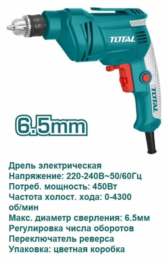Ниже Вы можете прочитать отзывы на Дрель электрическая TOTAL 450Вт, ознакомится с подробными характеристиками, посмотреть интересные обзоры и фотографии на Дрель электрическая TOTAL 450Вт.