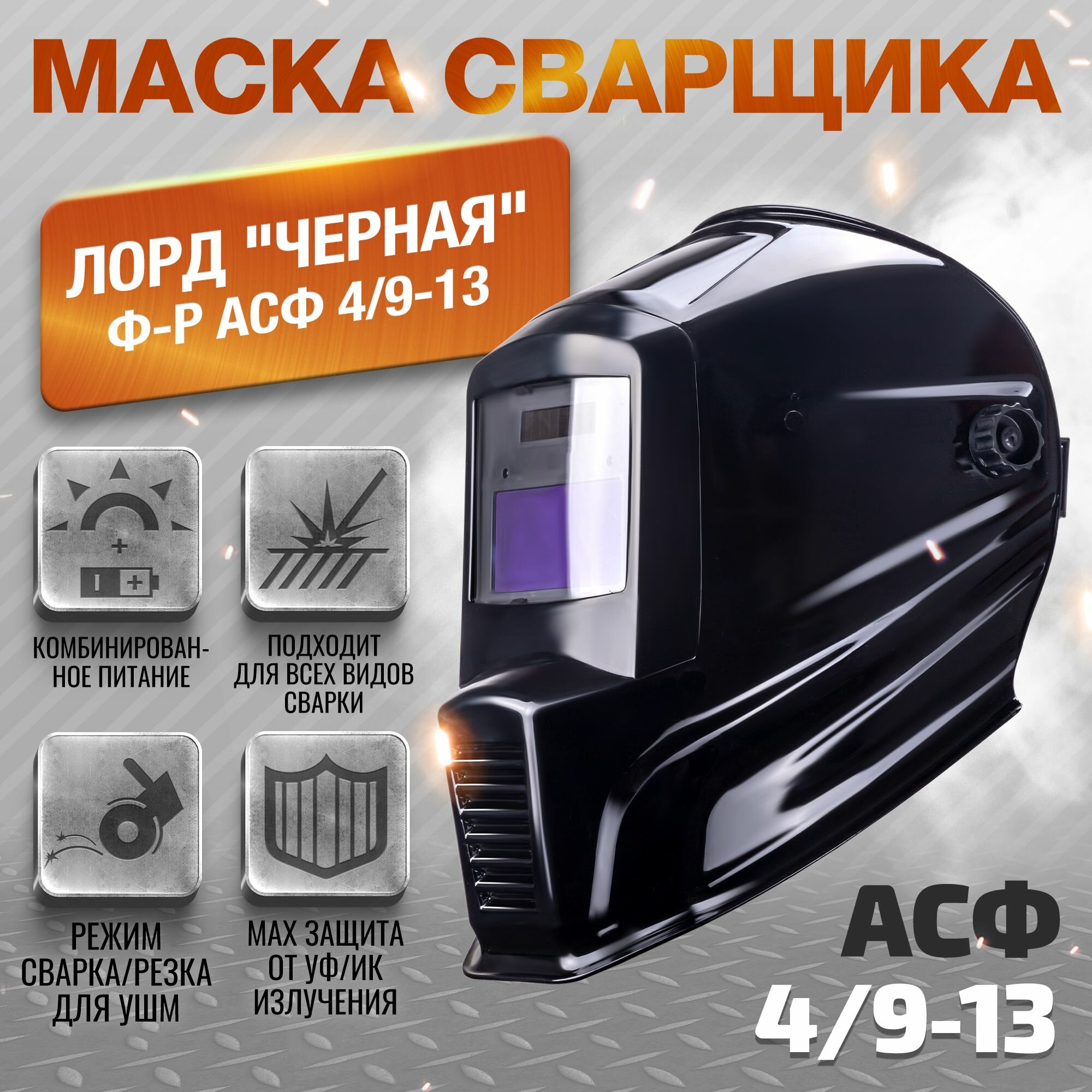 Маска сварщика лорд "черная" (ф-р АСФ 4/9-13) интересное: